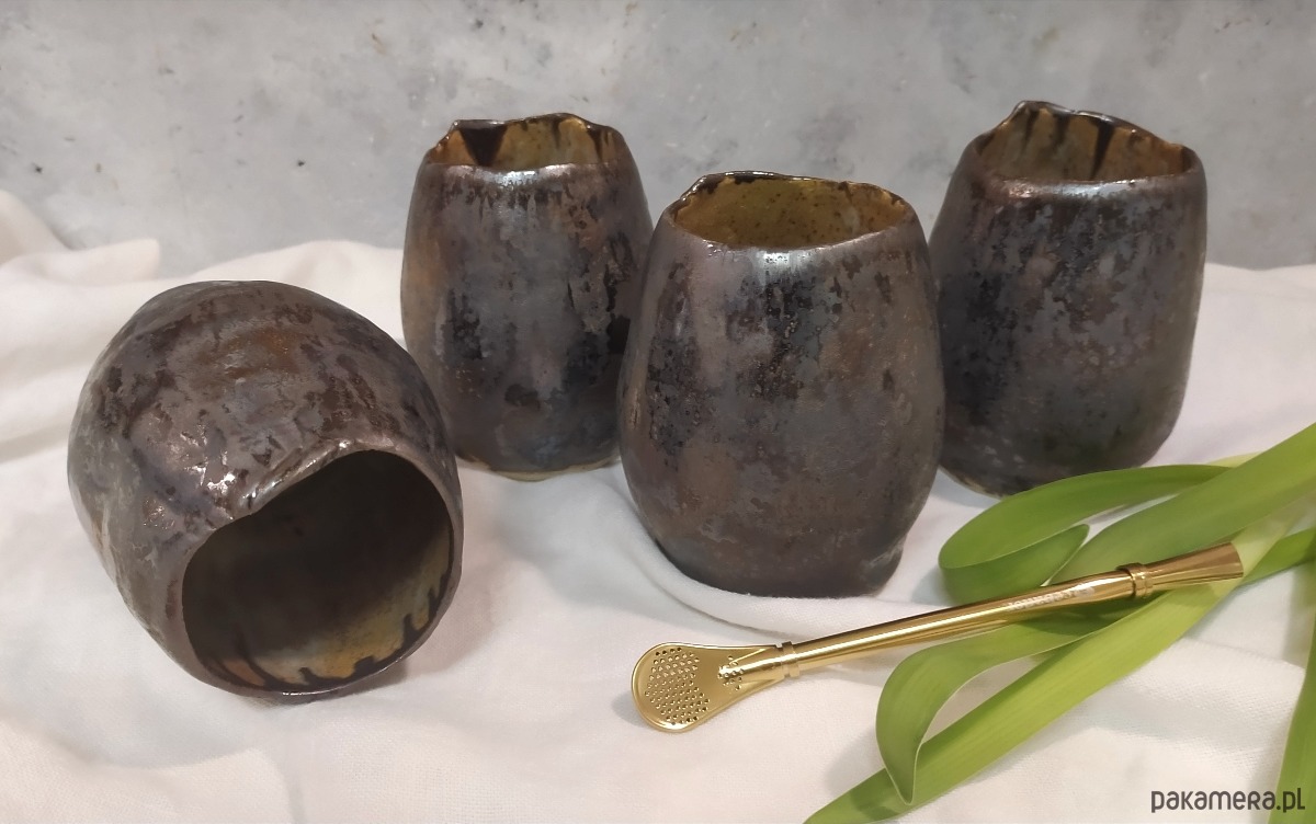 Matero lepione odręcznie z płata gliny, następnie wypalone w piecu do ceramiki,szkliwione odręcznie pędzelkiem oraz ponownie wypalone w temperaturze ponad 1200stopni.