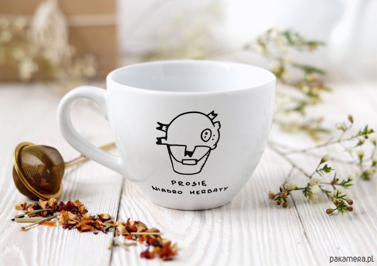 Dodatkowa personalizacja : Na ściance kubka, po przeciwnej stronie rysunku, możemy dopisać dowolny krótki tekst (do 6 słów) - jeśli chcesz skorzystać z tej opcji dodaj do koszyka produkt PERSONALIZACJA KUBKA dostępny w naszym sklepie.