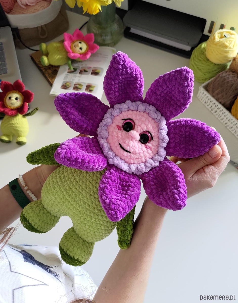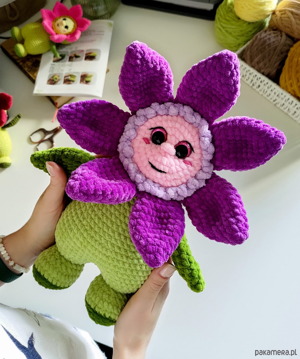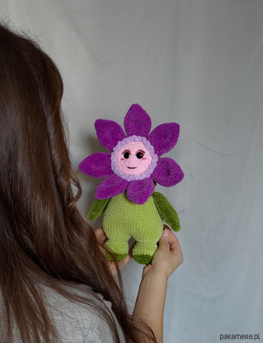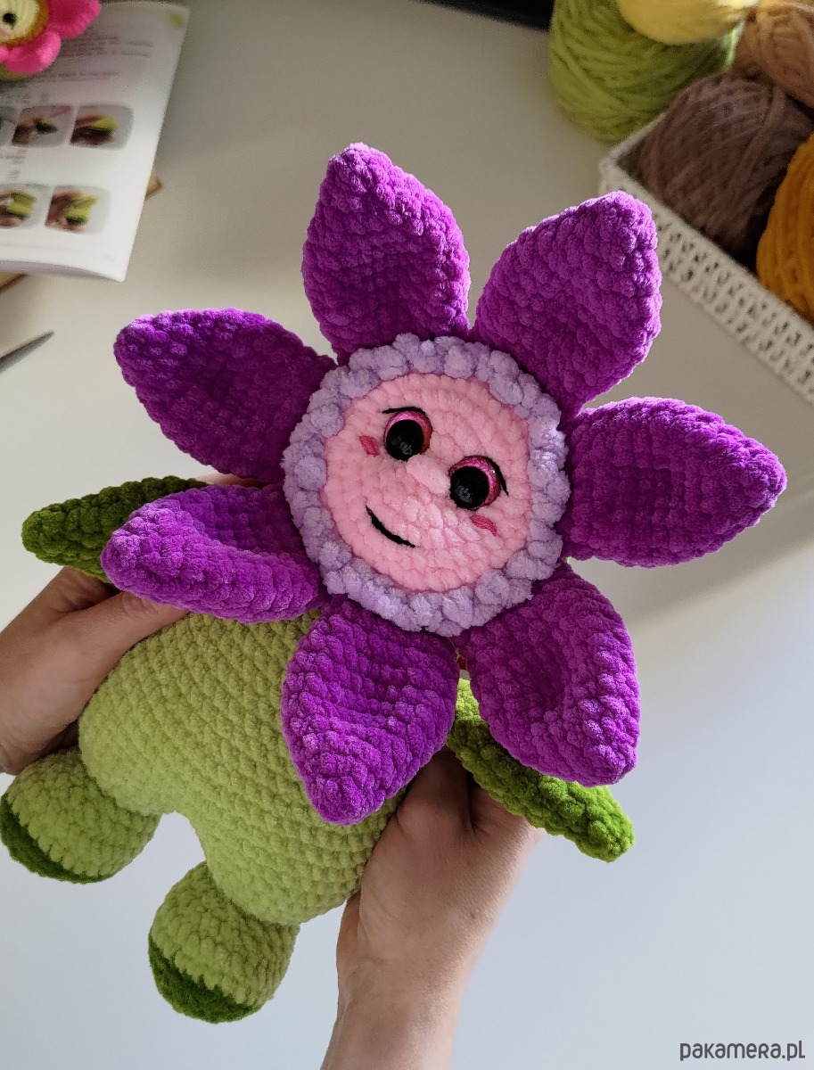 Duży kwiatek pluszowy wykonany na szydełku to idealny prezent na wiele różnych świąt!