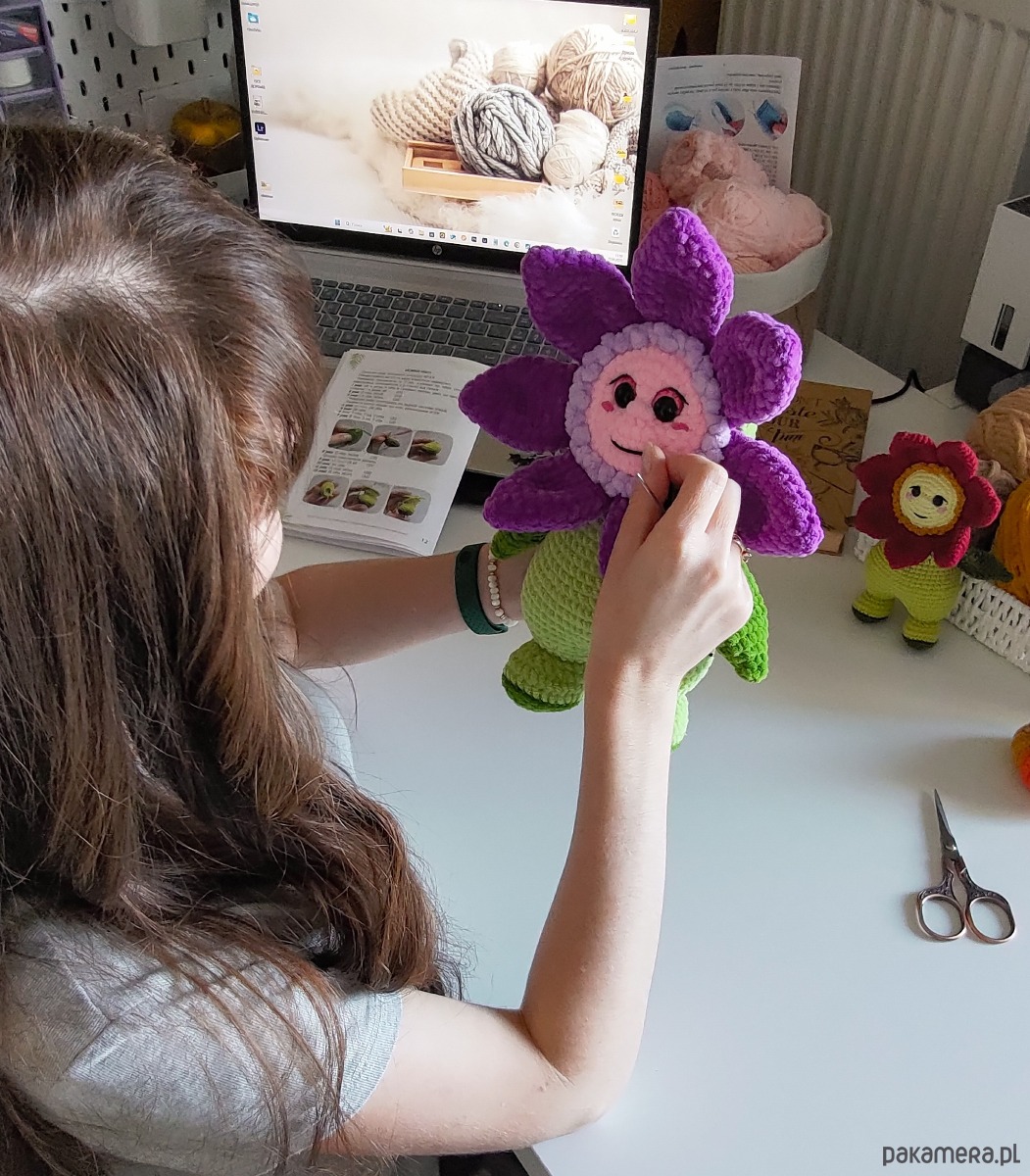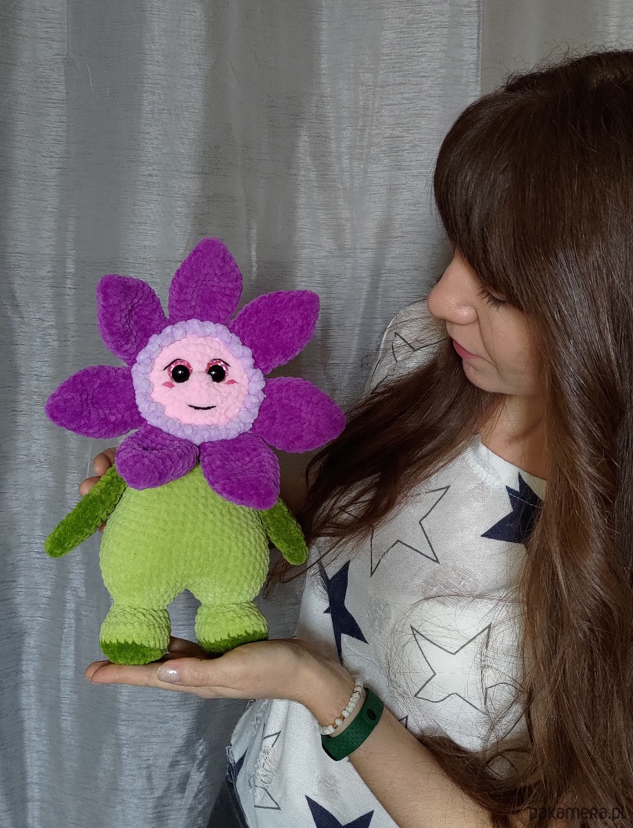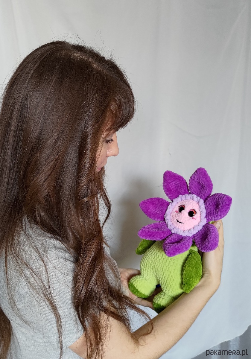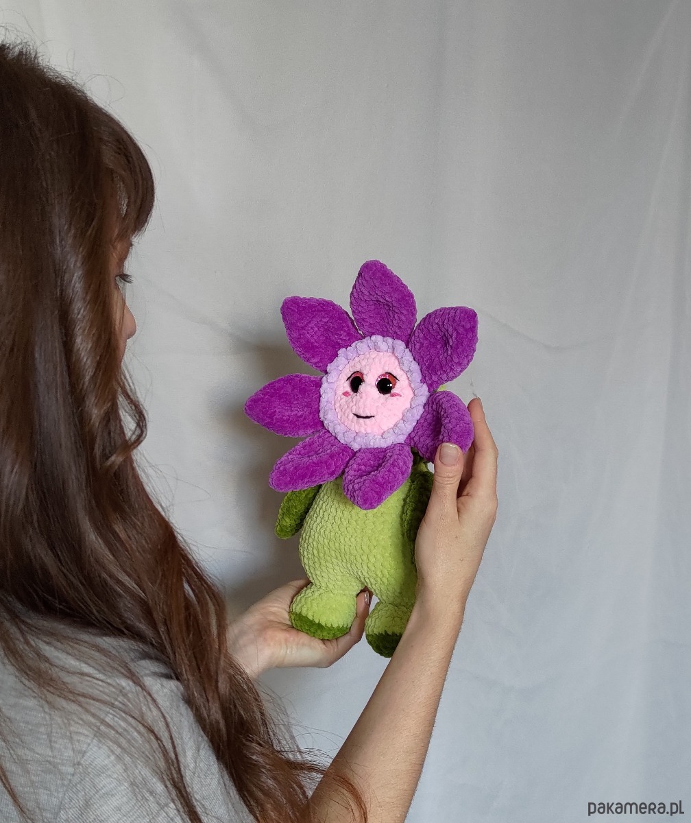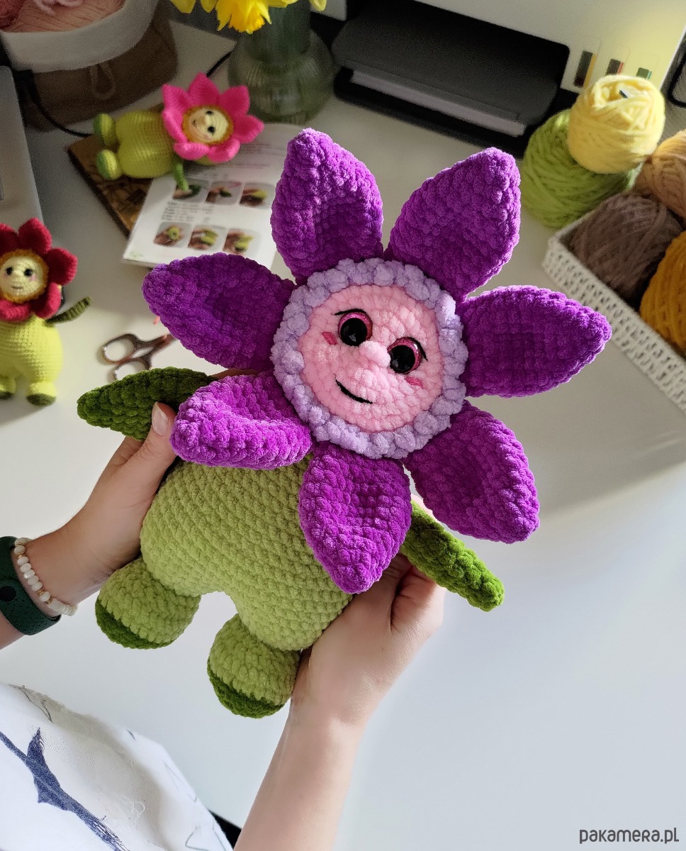 Duży kwiatek pluszowy wykonany na szydełku to idealny prezent na wiele różnych świąt!