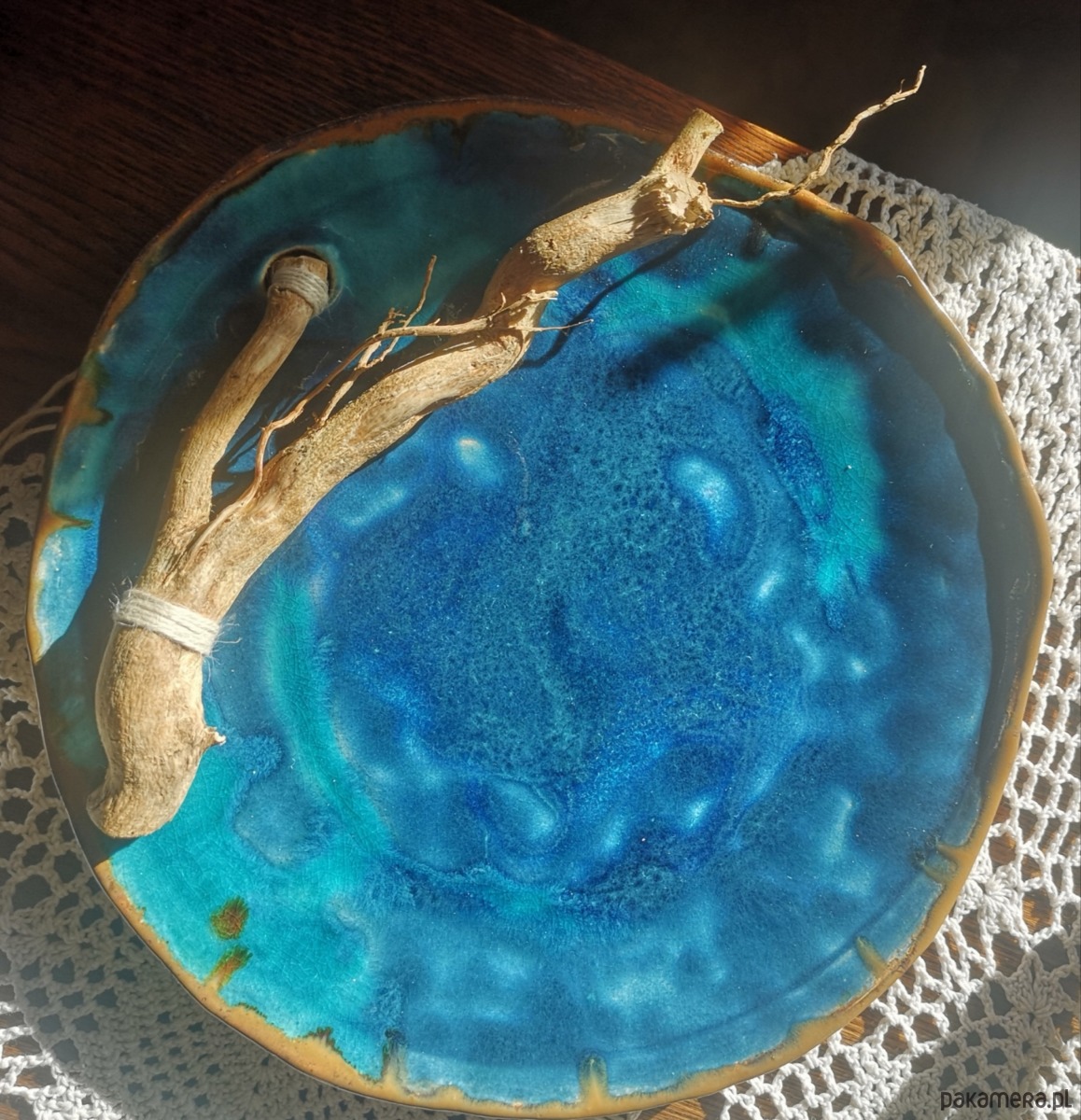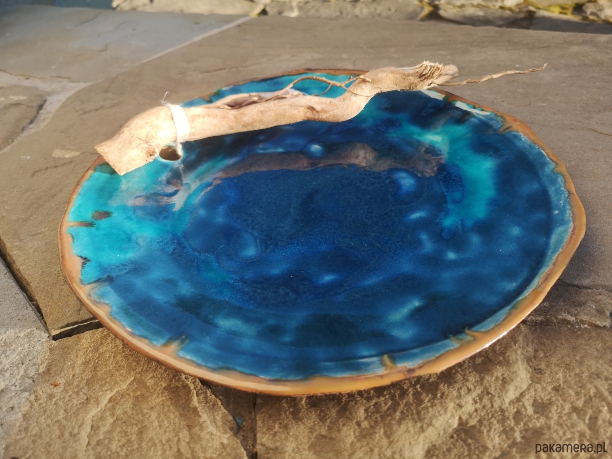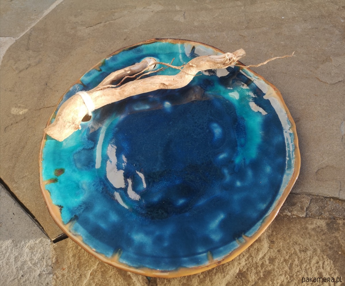 Duży niebieski talerz ręcznie wykonany 28 cm