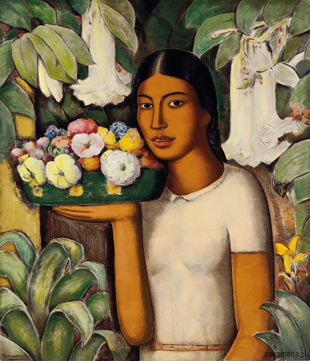 Duży obraz na płótnie - kobieta z kwiatami - Alfredo Ramos Martinez