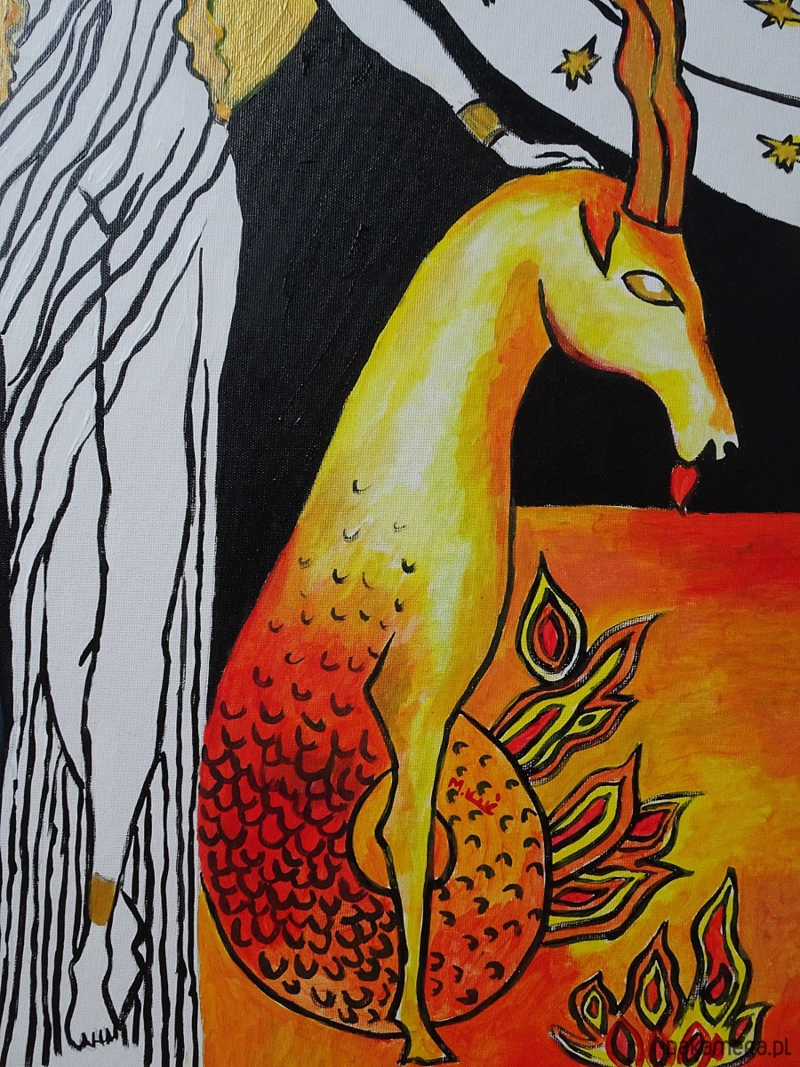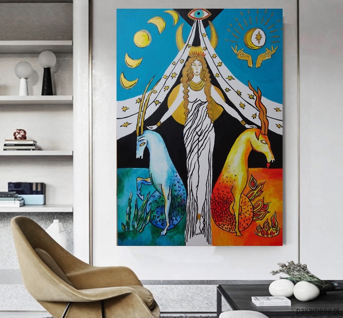Obraz namalowany techniką olejną na blejtramie o wymiarach: 100/70 cm, boki obrazu zamalowane, sygnowany z przodu. Jest to moja autorska kompozycja. Świetnie może być eksponowany w nowoczesnych wnętrzach o stonowanej kolorystyce. Swoimi barwami może rozjaśnić takie wnętrza, w oświetleniu dziennym, jak i sztucznym.