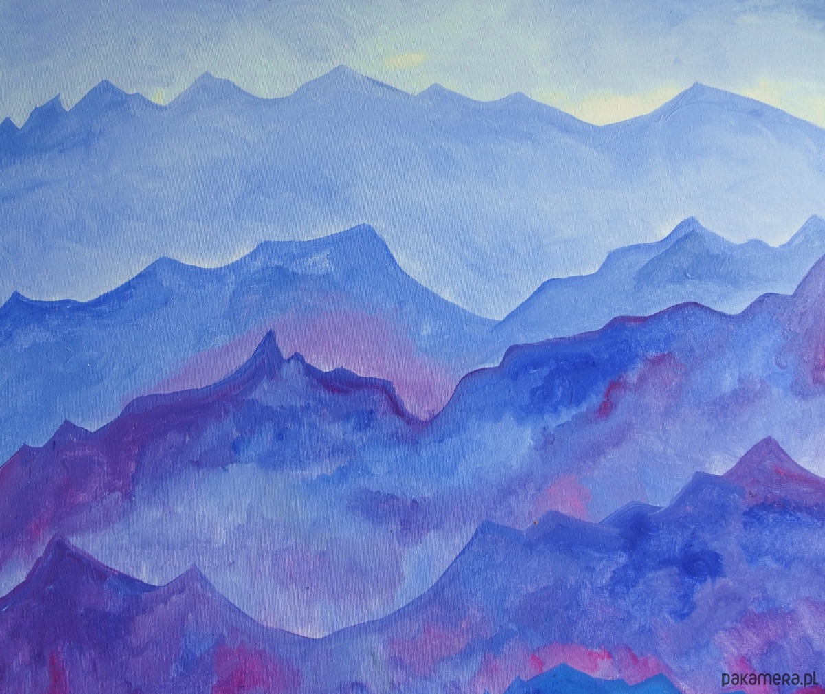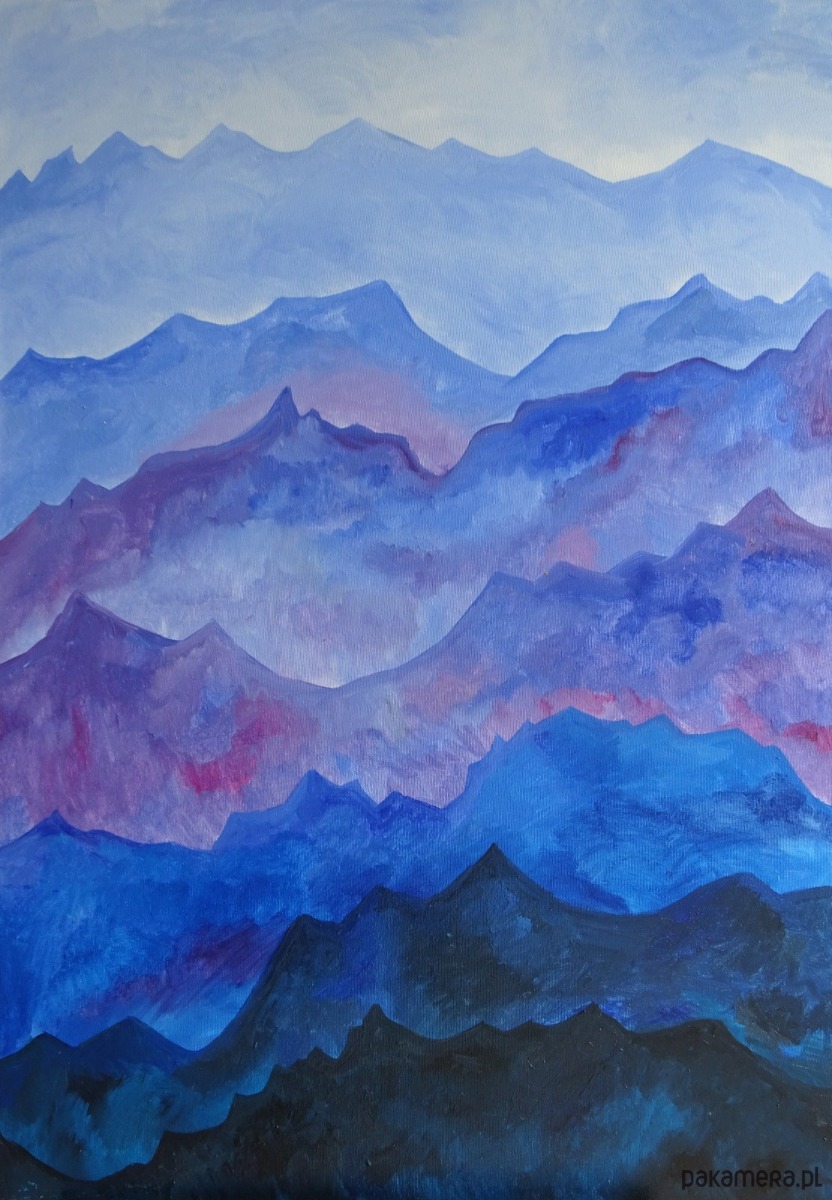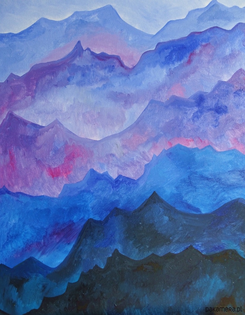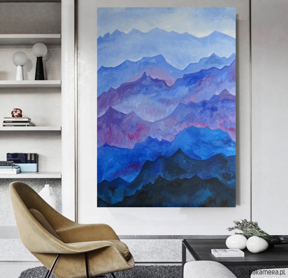 Obraz namalowany techniką olejną na blejtramie o wymiarach: 100/70 cm, boki obrazu zamalowane, sygnowany z przodu. Jest to moja autorska kompozycja. Świetnie może być eksponowany w nowoczesnych wnętrzach o stonowanej kolorystyce. Swoimi barwami może rozjaśnić takie wnętrza, w oświetleniu dziennym, jak i sztucznym.