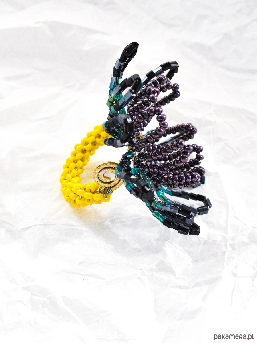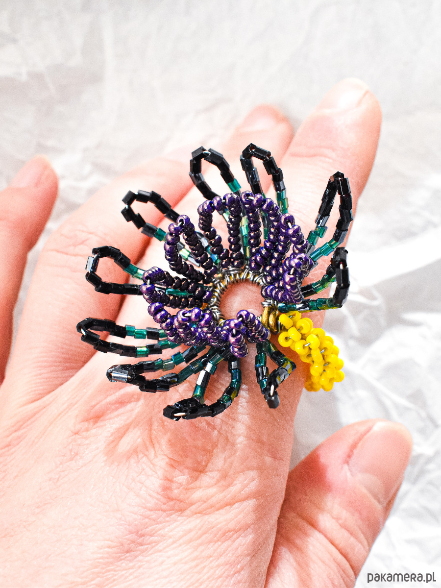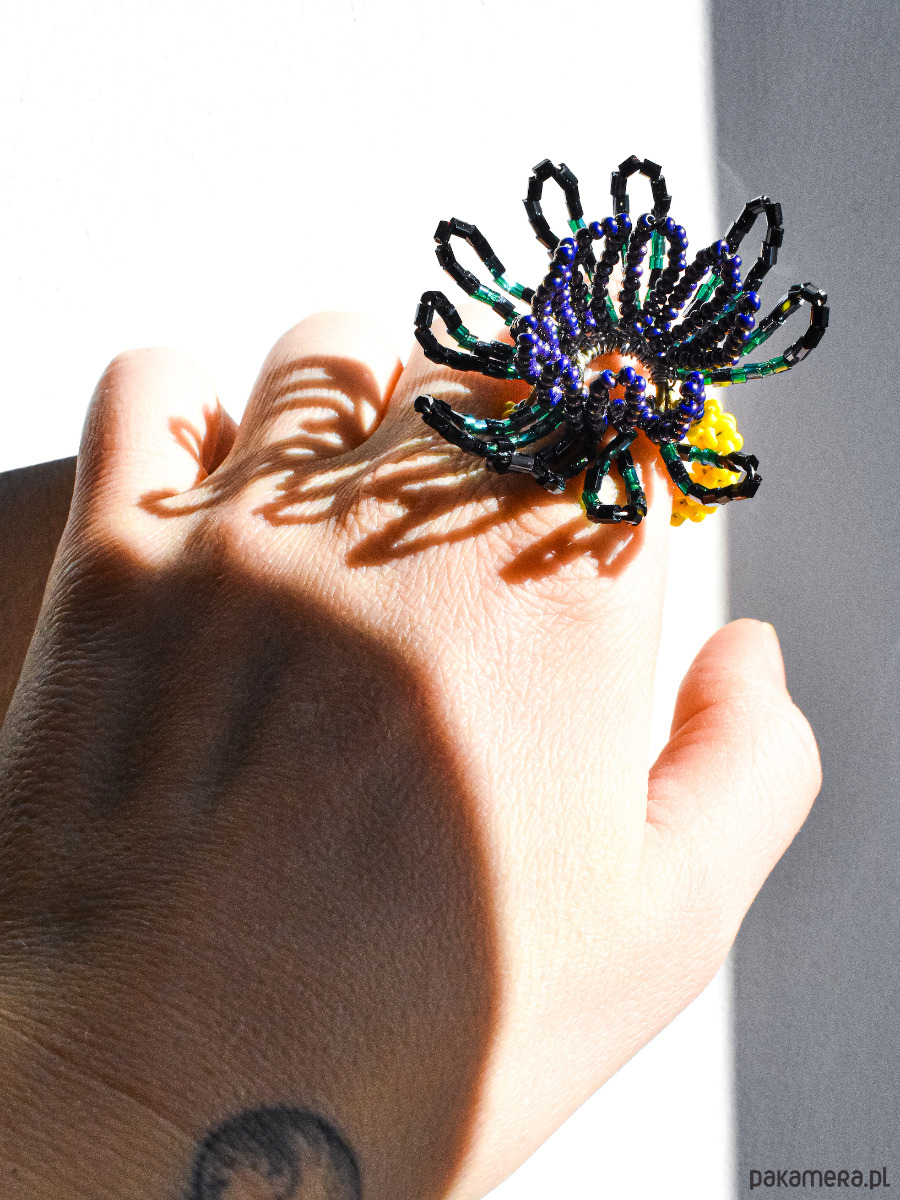 Oryginalny, efektowny pierścionek, który przyciąga uwagę i podkreśla indywidualny styl. Idealny dla osób, które lubią wyjątkową, ręcznie wykonaną biżuterię w artystycznym wydaniu i cenią niepowtarzalne dodatki.