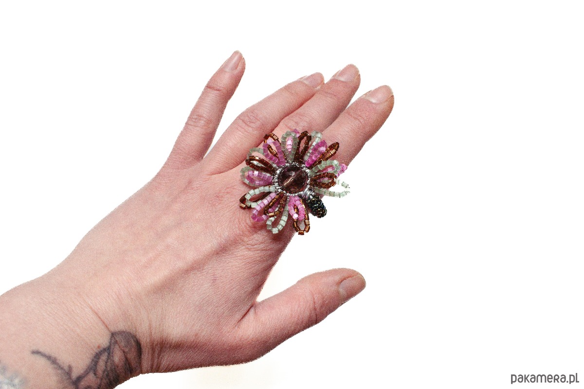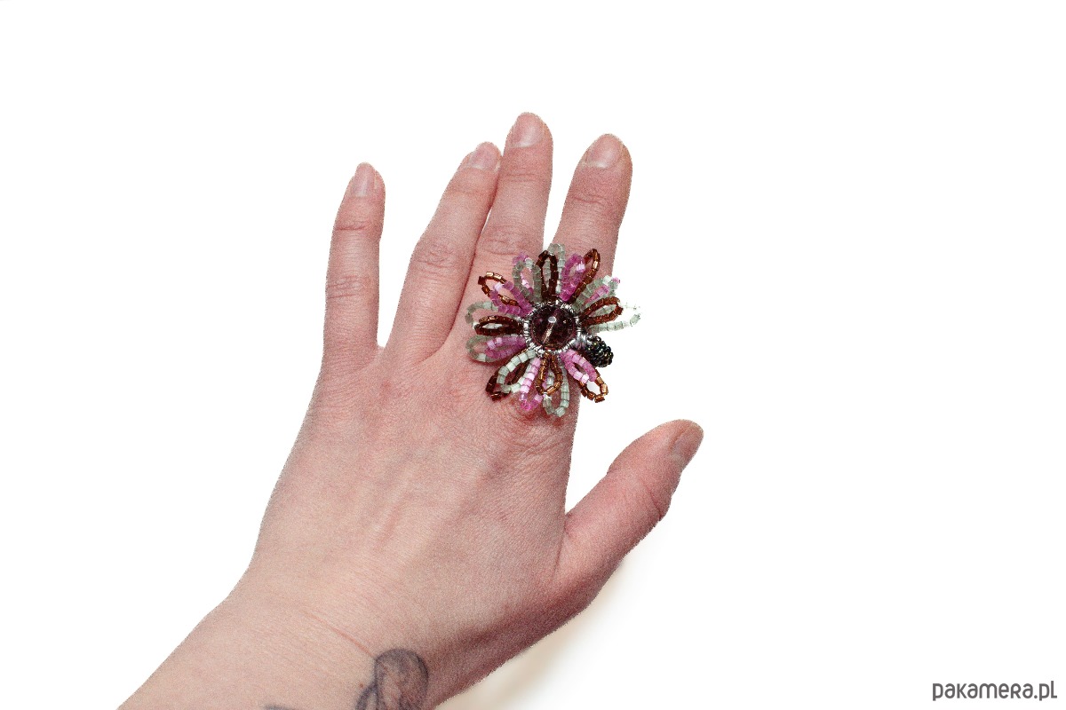 Oryginalny, efektowny pierścionek, który przyciąga uwagę i podkreśla indywidualny styl. Idealny dla osób, które lubią wyjątkową, ręcznie wykonaną biżuterię w artystycznym wydaniu i cenią niepowtarzalne dodatki.