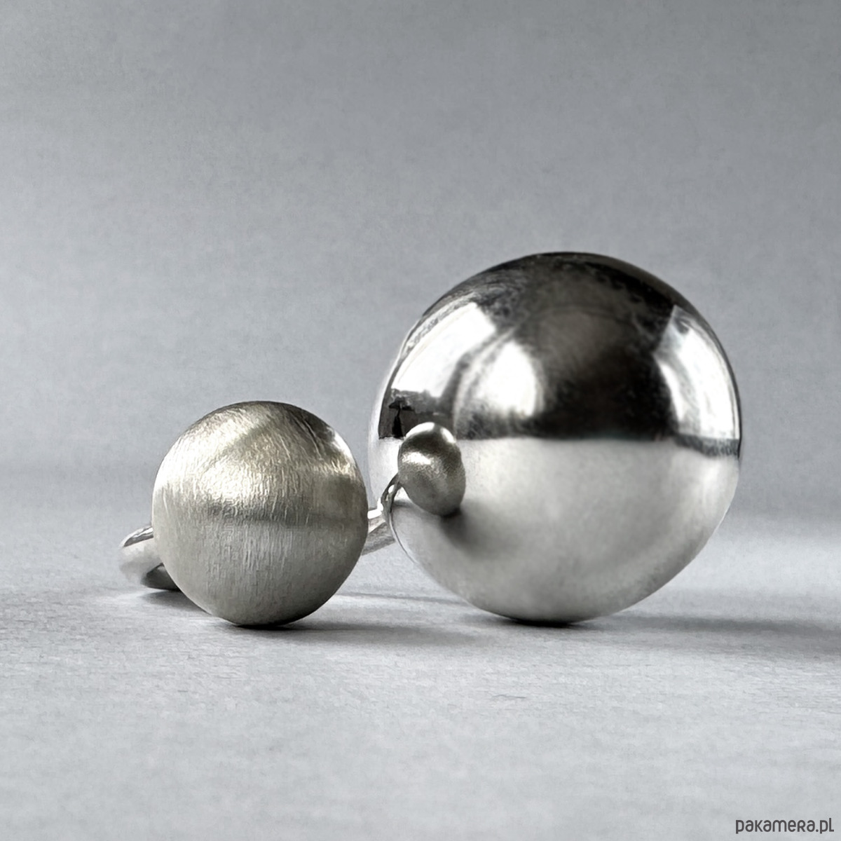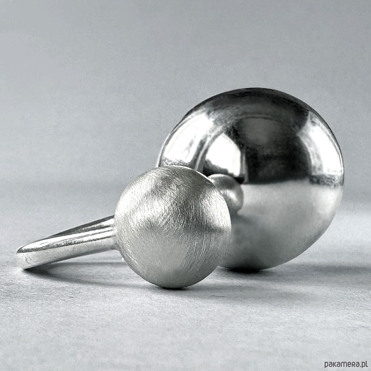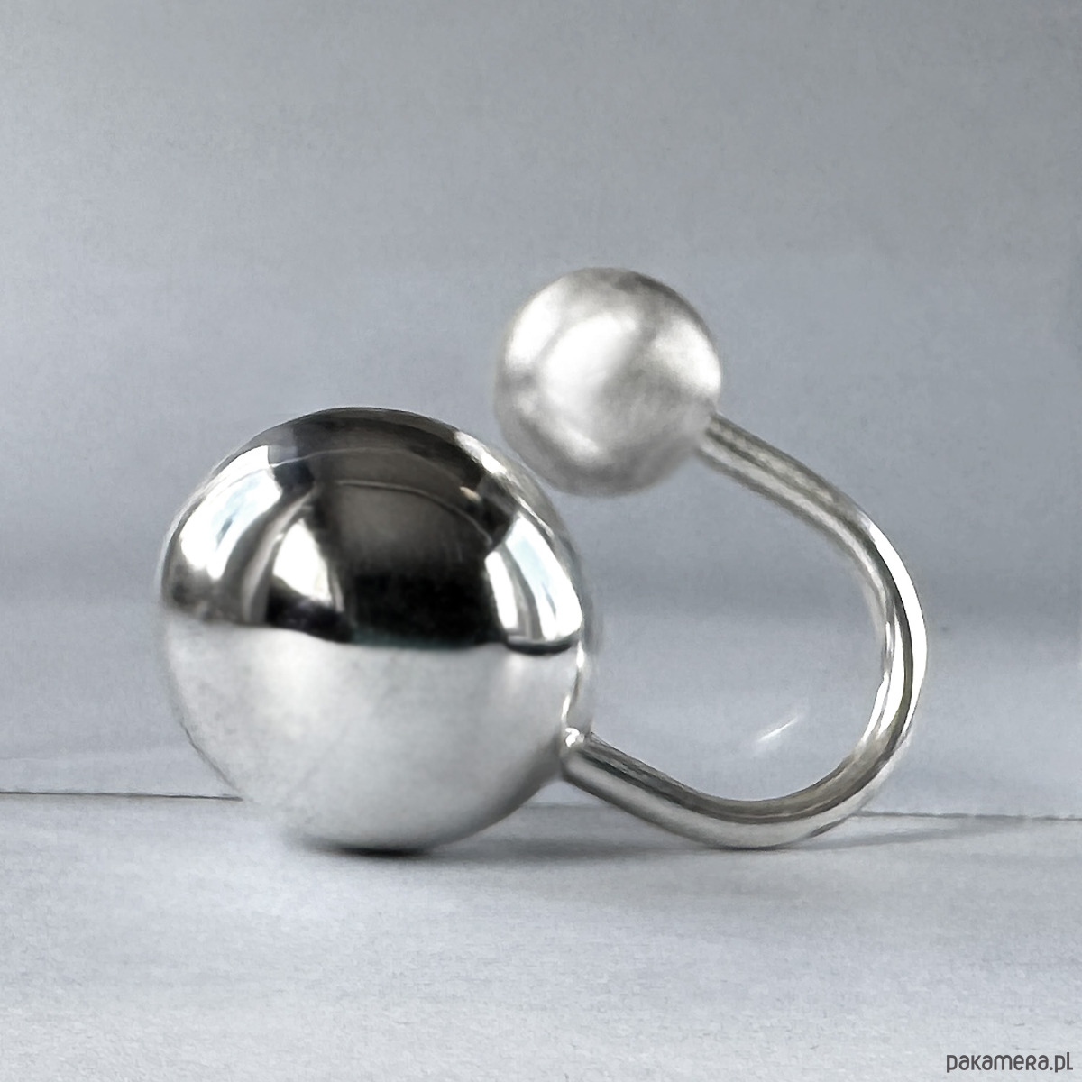 Kolekcja powstała z myślą o kobietach, ceniących sobie prostą, geometryczną biżuterię. Uniwersalny i minimalistyczny pierścionek z opcją regulacji, wykonany został ze srebra próby 925. Większa, polerowana kula, stanowi ciekawy kontrast dla mniejszej, matowej formy. Całość kompozycji urzeka swoją prostotą. Pierścionek jest bardzo wygodny w noszeniu i pasuje do każdej stylizacji, a co najważniejsze - robi piorunujące wrażenie :)