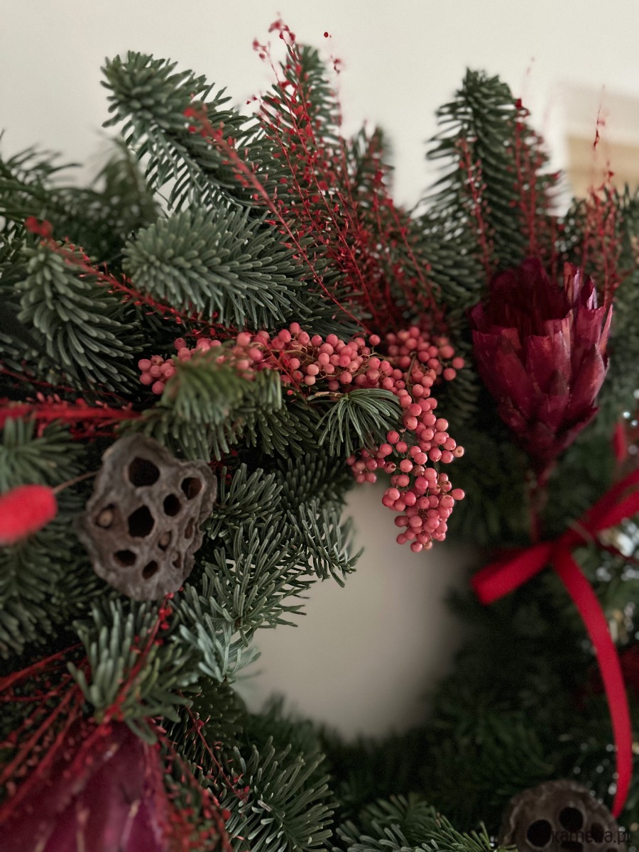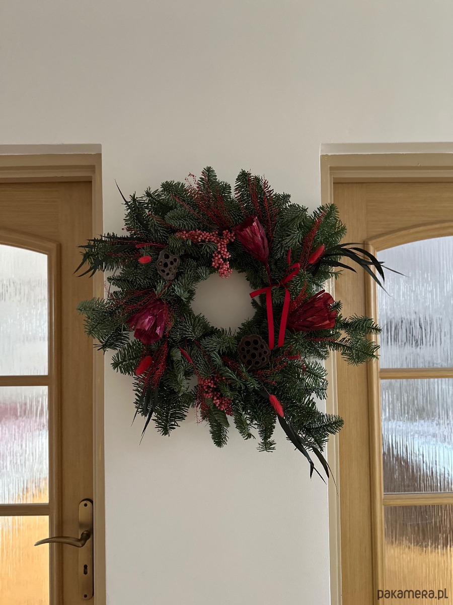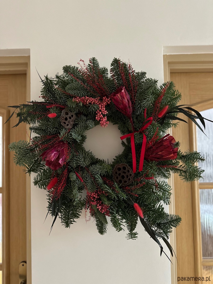 Duży świąteczny wianek protea czerwień