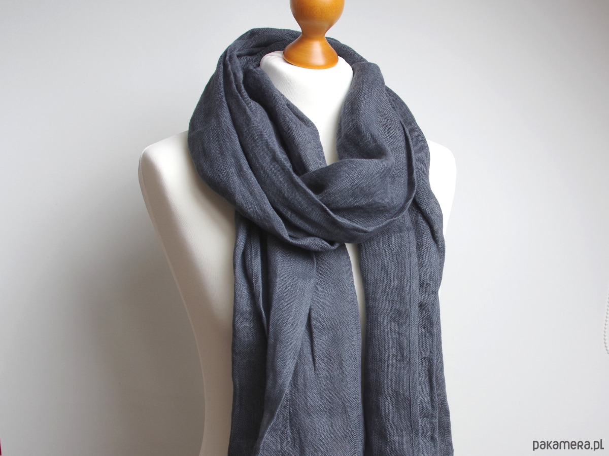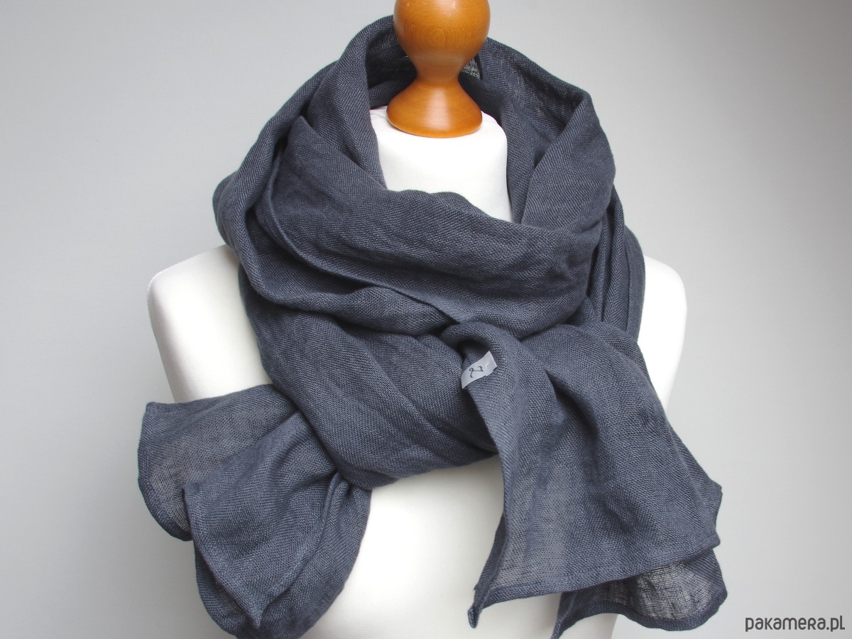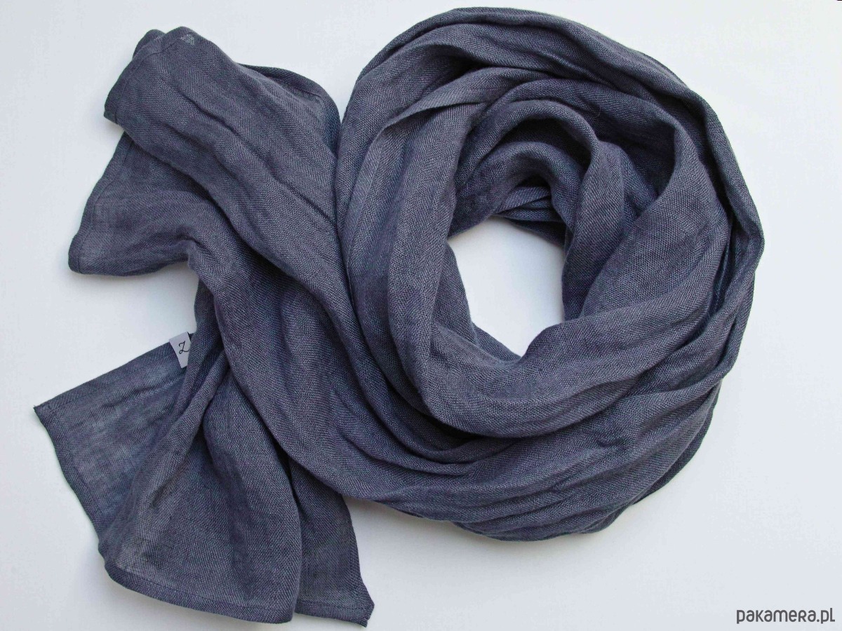 Duży, obszerny szal/apaszka z naturalnej tkaniny lnianej. Szal jest miły i miękki w dotyku, bardzo ładnie się układa. Tkanina ma gniecioną fakturę, przez co szal jest puszysty.
