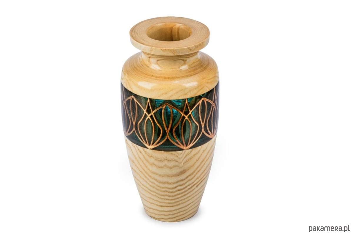 Dekoracyjny wazon z drewna i żywicy epoksydowej z motywem tulipana
