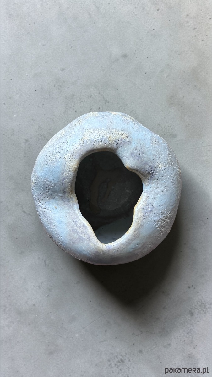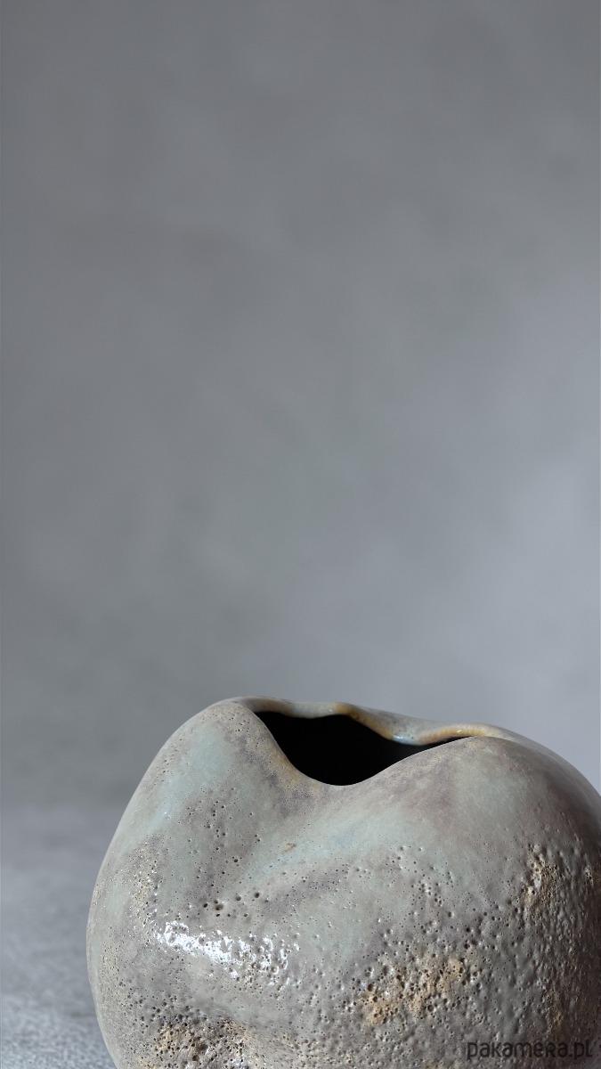 Ten wazon przypomina bardziej ceramiczny obiekt lub małą rzeźbę niż klasyczne naczynie. Pięknie wygląda zarówno z pojedynczą gałęzią czy kwiatami, jak i ustawiony samodzielnie we wnętrzu.