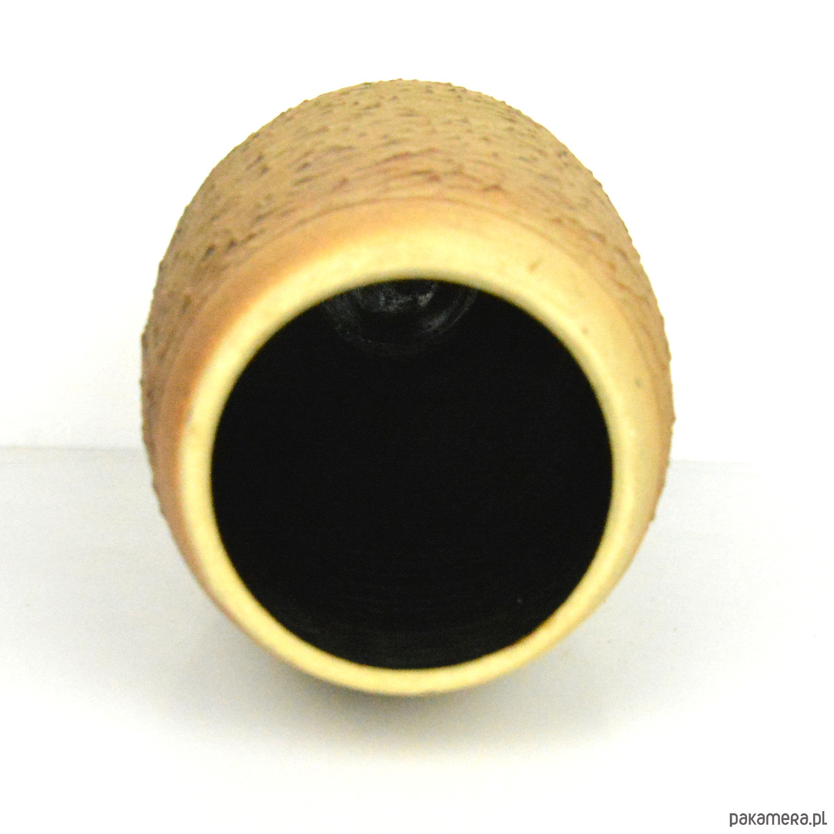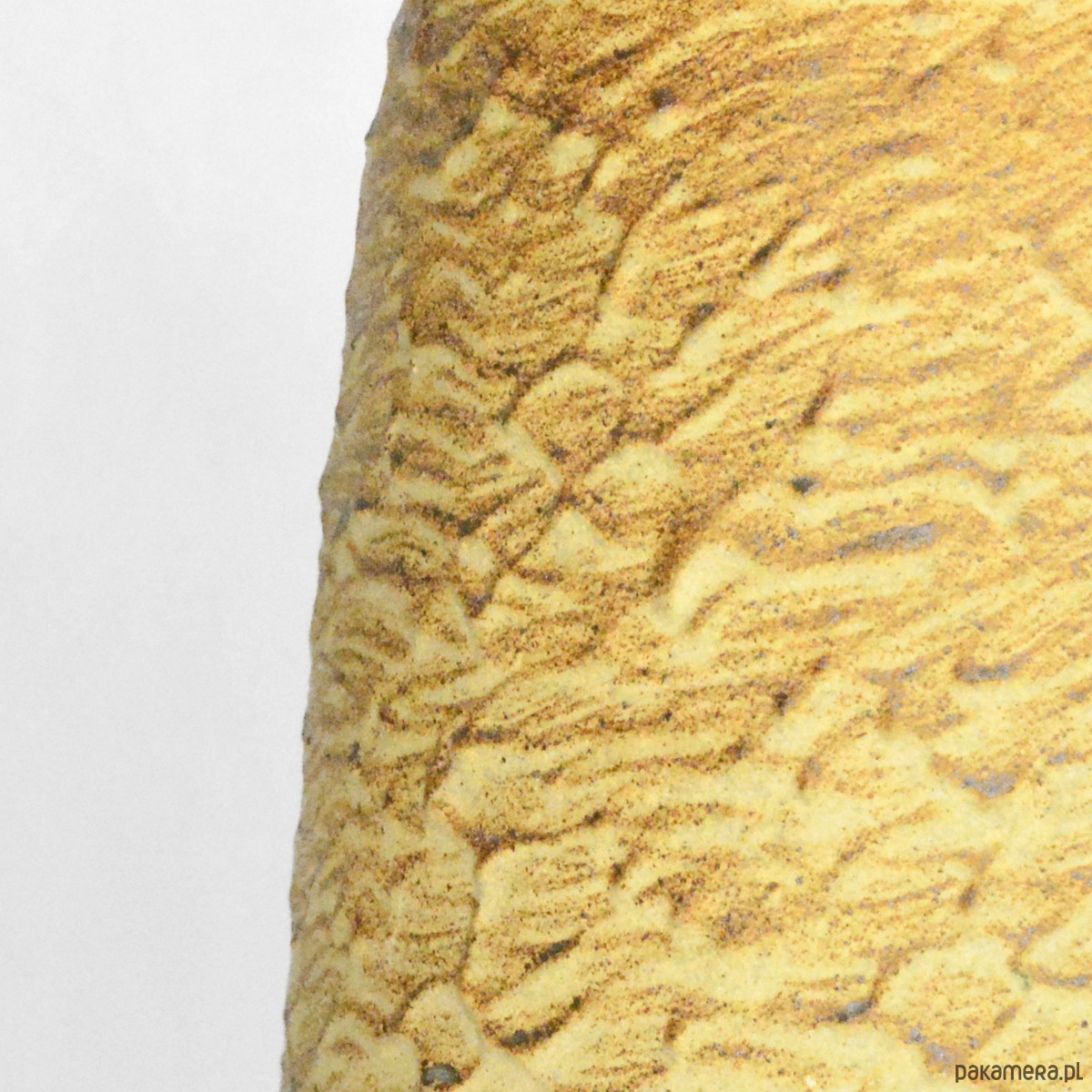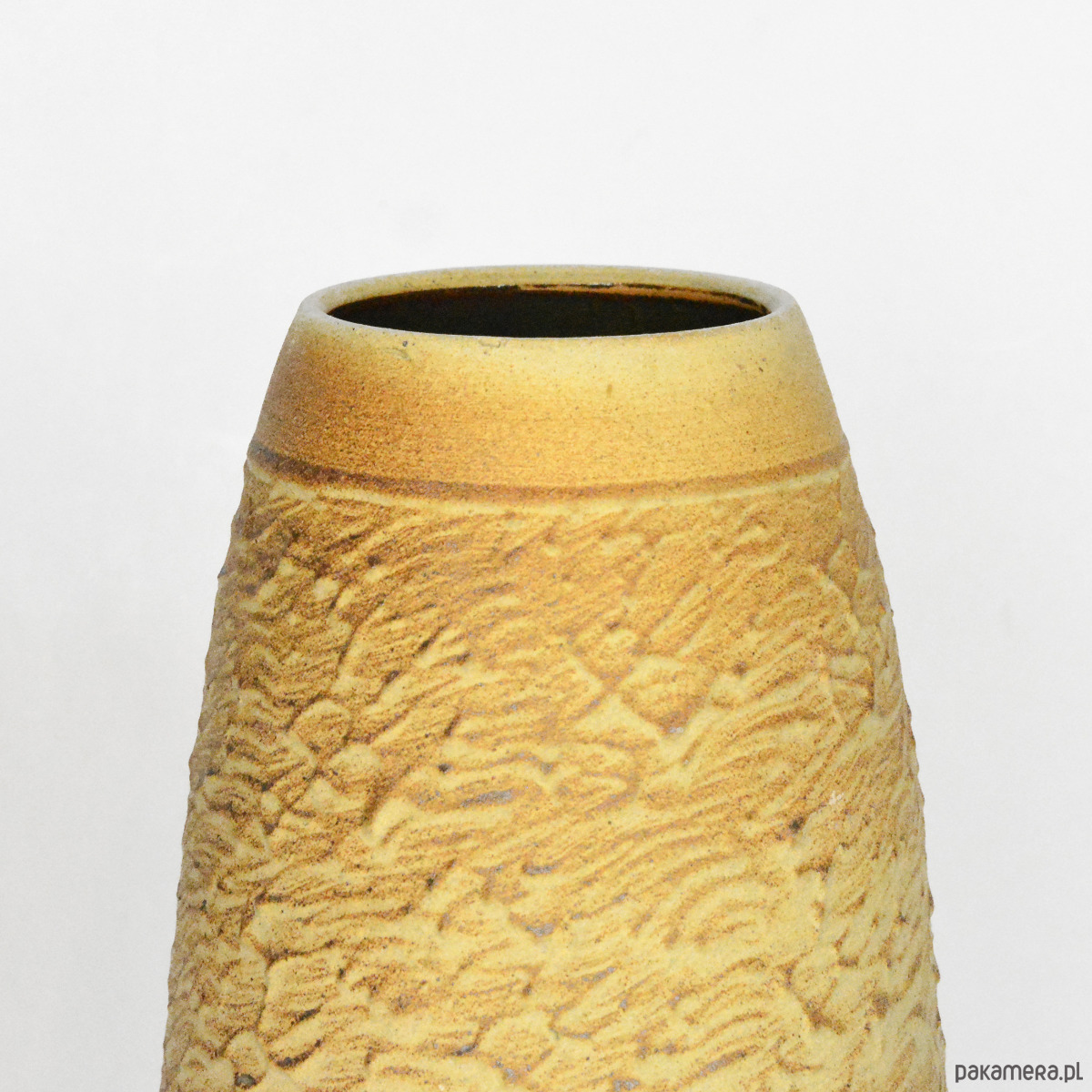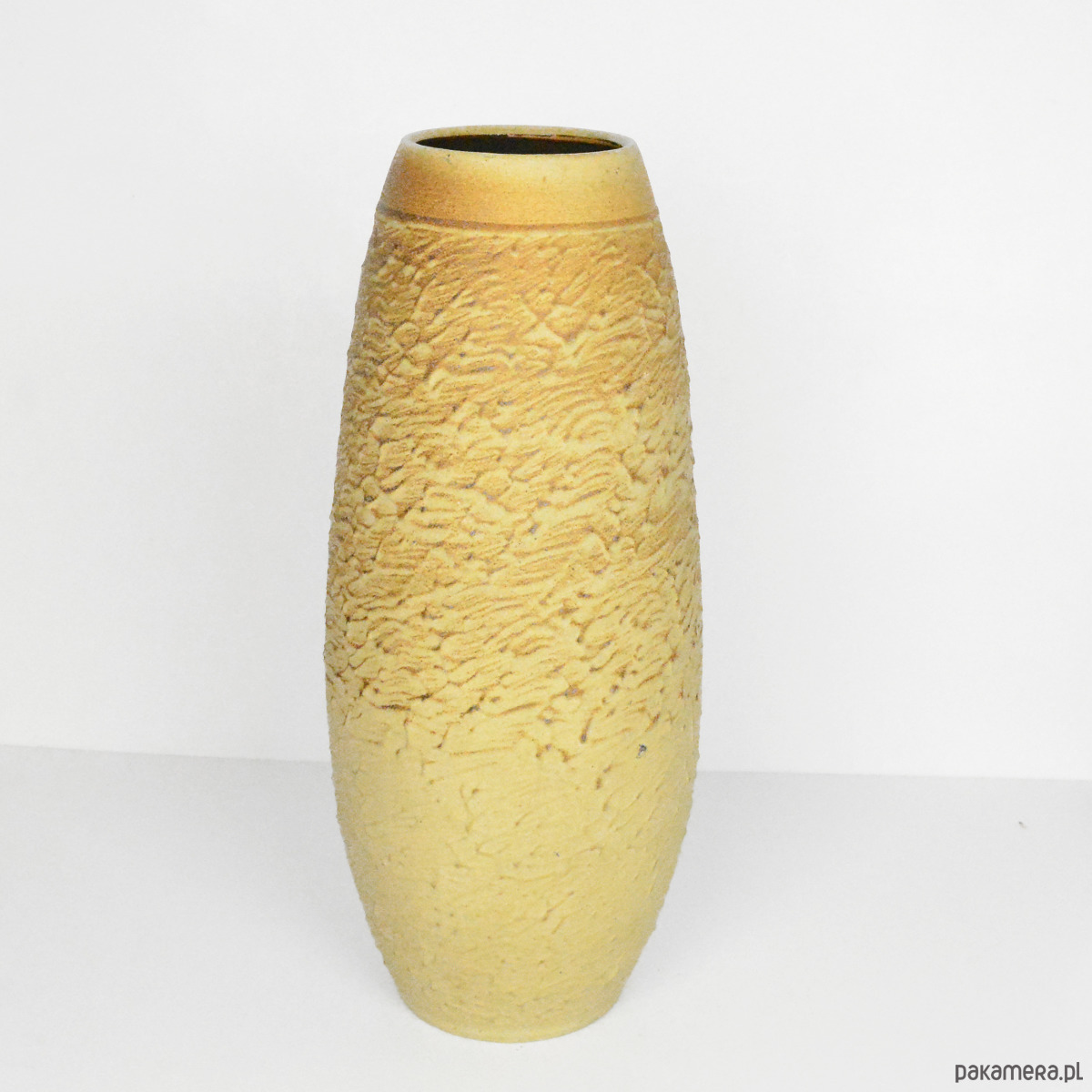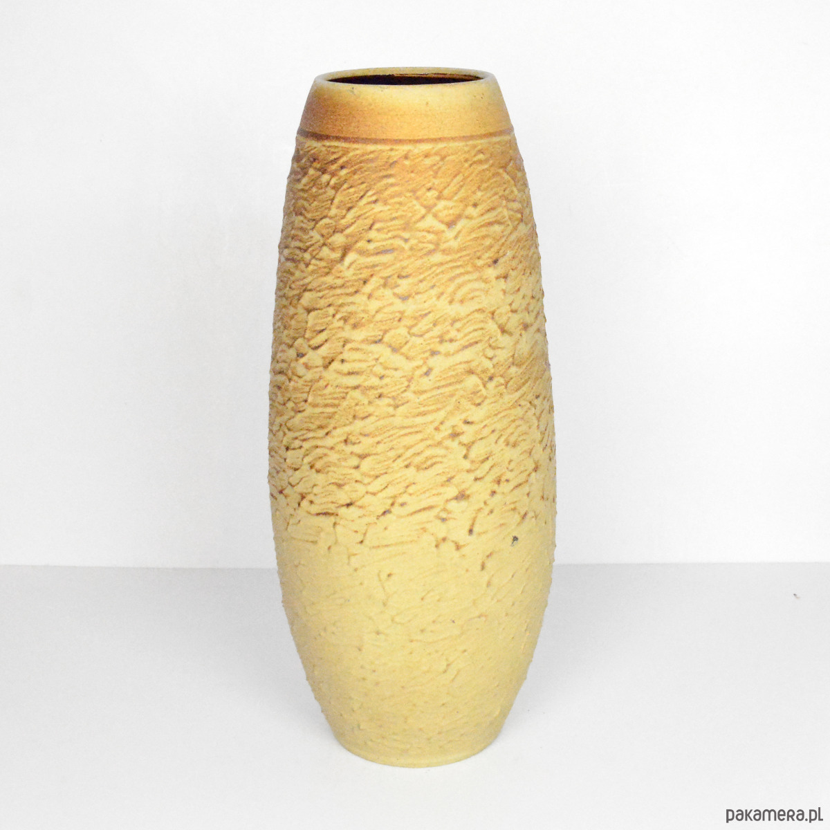 Ceramiczny, wielki wazon w stylu rustykalnym z sygnaturą 12 został wykonany w Niemczech dla VEB Keramik Werke Haldensleben w latach 60. Wazon w odcieniach szarości z ciekawą struktura naciekową. Zachowany jest w idealnym stanie, z minimalnymi śladami użytkowania, od spodu widoczne oznaczenie modelu.