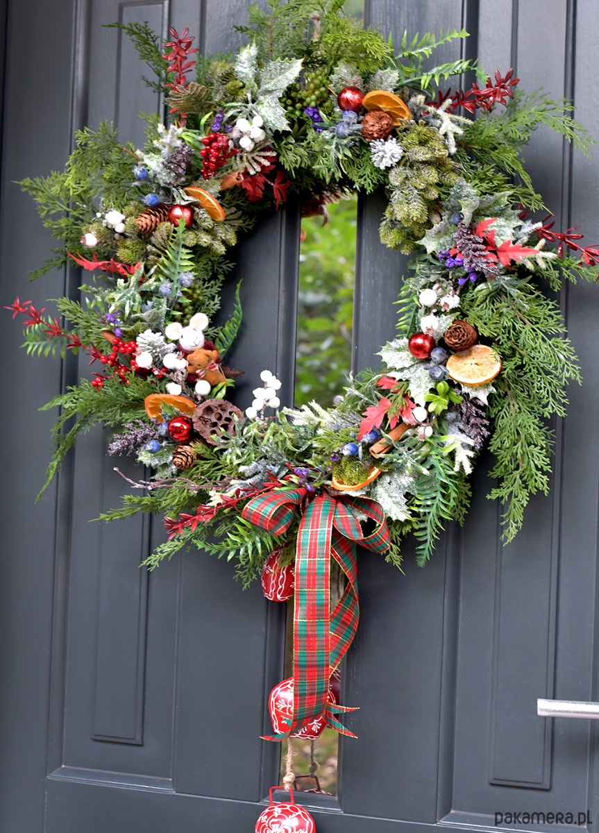 Wianek ma z tyłu pętelkę do zawieszenia na drzwiach.