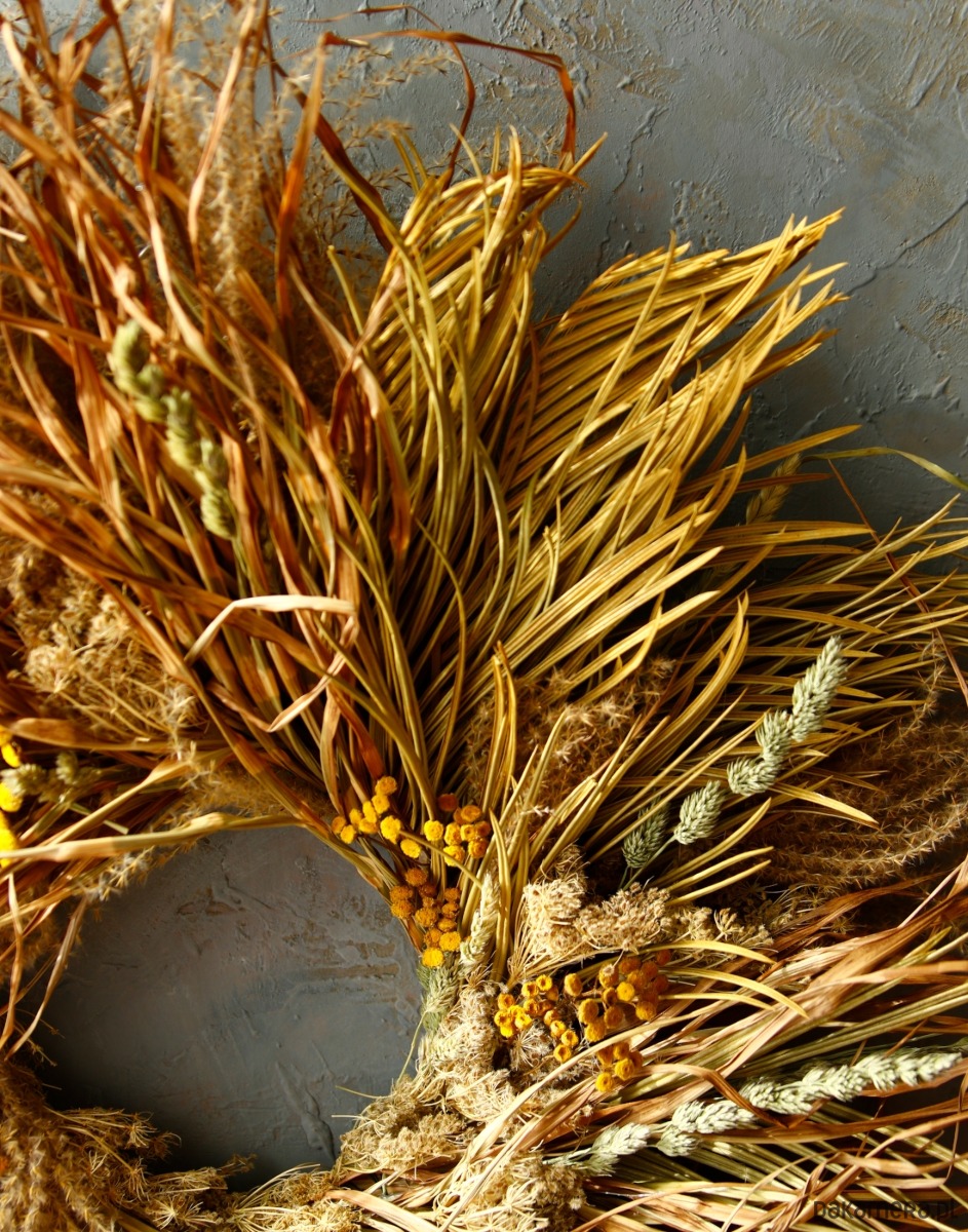 Duży wianek z miskantu- ekspresyjna dekoracja ścienna wabi sabi