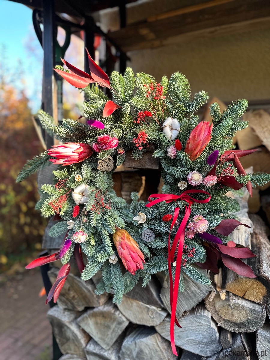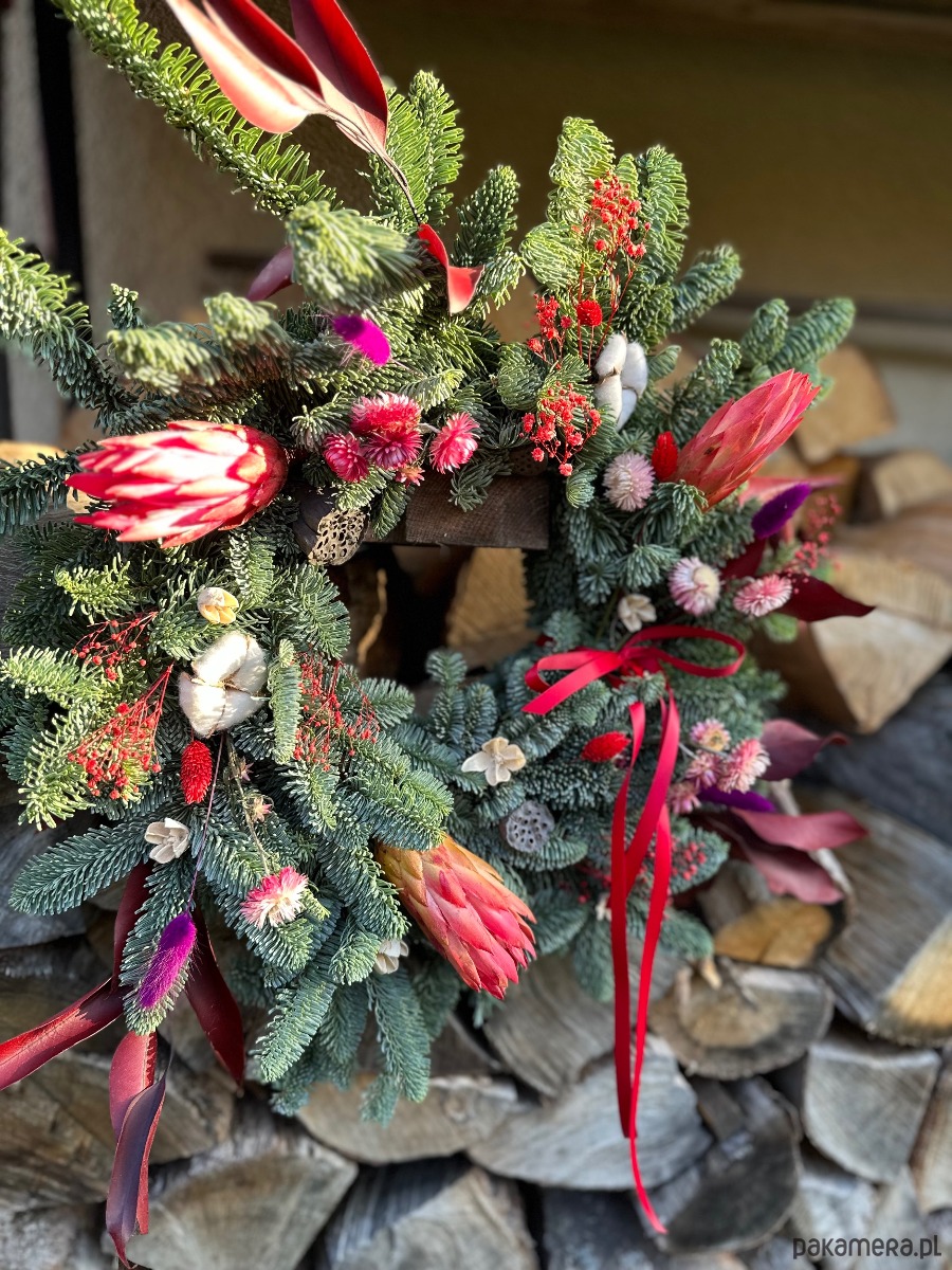 Wykonany na słomianym podkładzie z wykorzystaniem roślinności żywej, suszonej i stabilizowanej 🌾🌲🌿