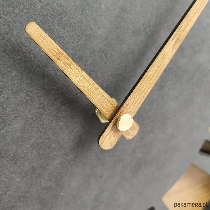 Zegar został wykonany z ekologicznej i bardzo twardej płyty typu MDF. wymiary tarczy: 30 cm kolor: czarny (antracyt), dąb naruralny mechanizm: płynący - BARDZO CICHY - brak efektu tykania w zestawie: Zegar + bateria AA Grubość zegara to 19 mm, mechanizm został umieszczony w wyfrezowanej kieszeni dzięki czemu idealnie dolega do ściany. Jesteśmy producentem, więc jeśli chciałbyś zegar w innym kolorze lub rozmiarze to chętnie podejmiemy się wykonania zegara według Waszych wskazówek.