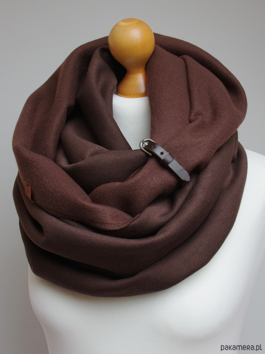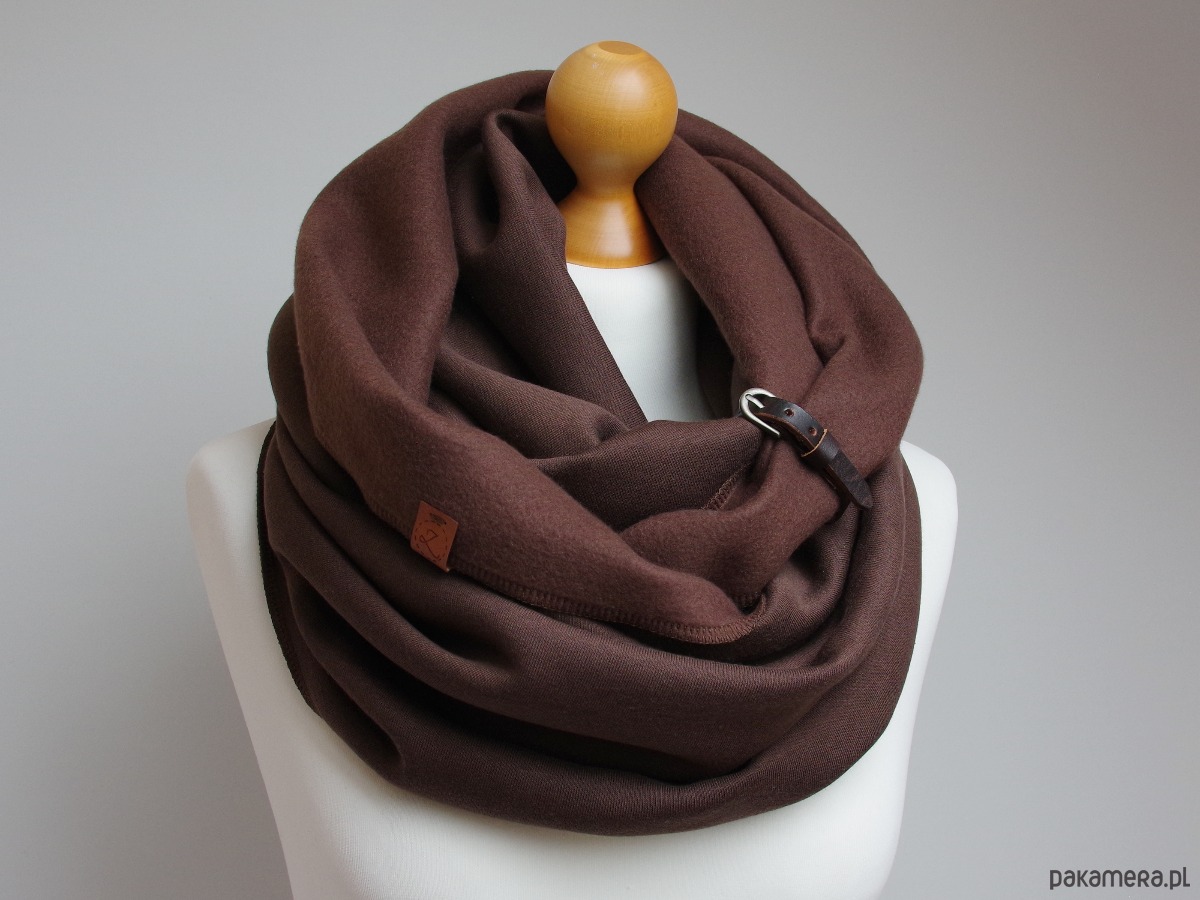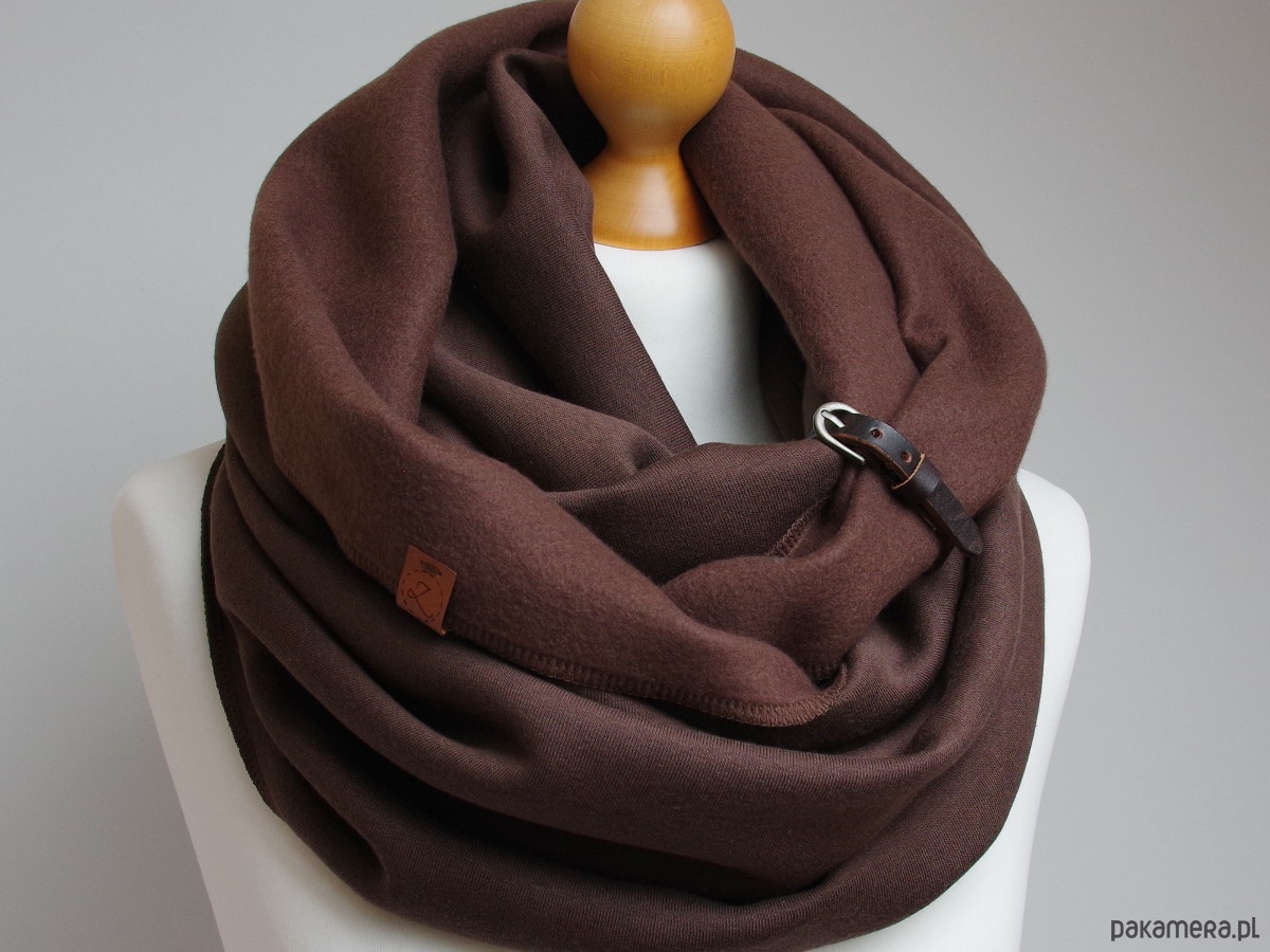 Zimowy komin dresowy damski – w CZEKOLADOWYM brązie z zapinką skórzaną