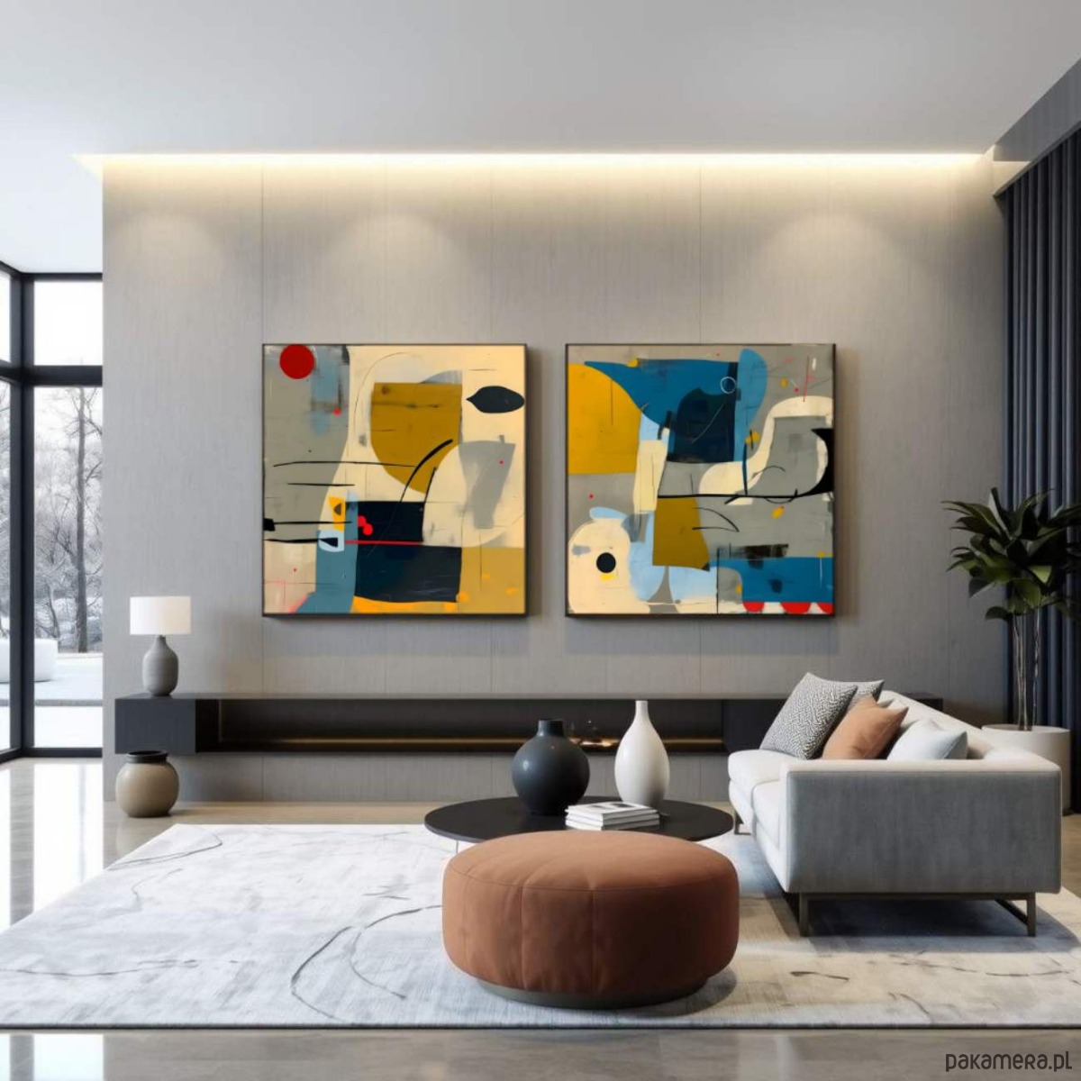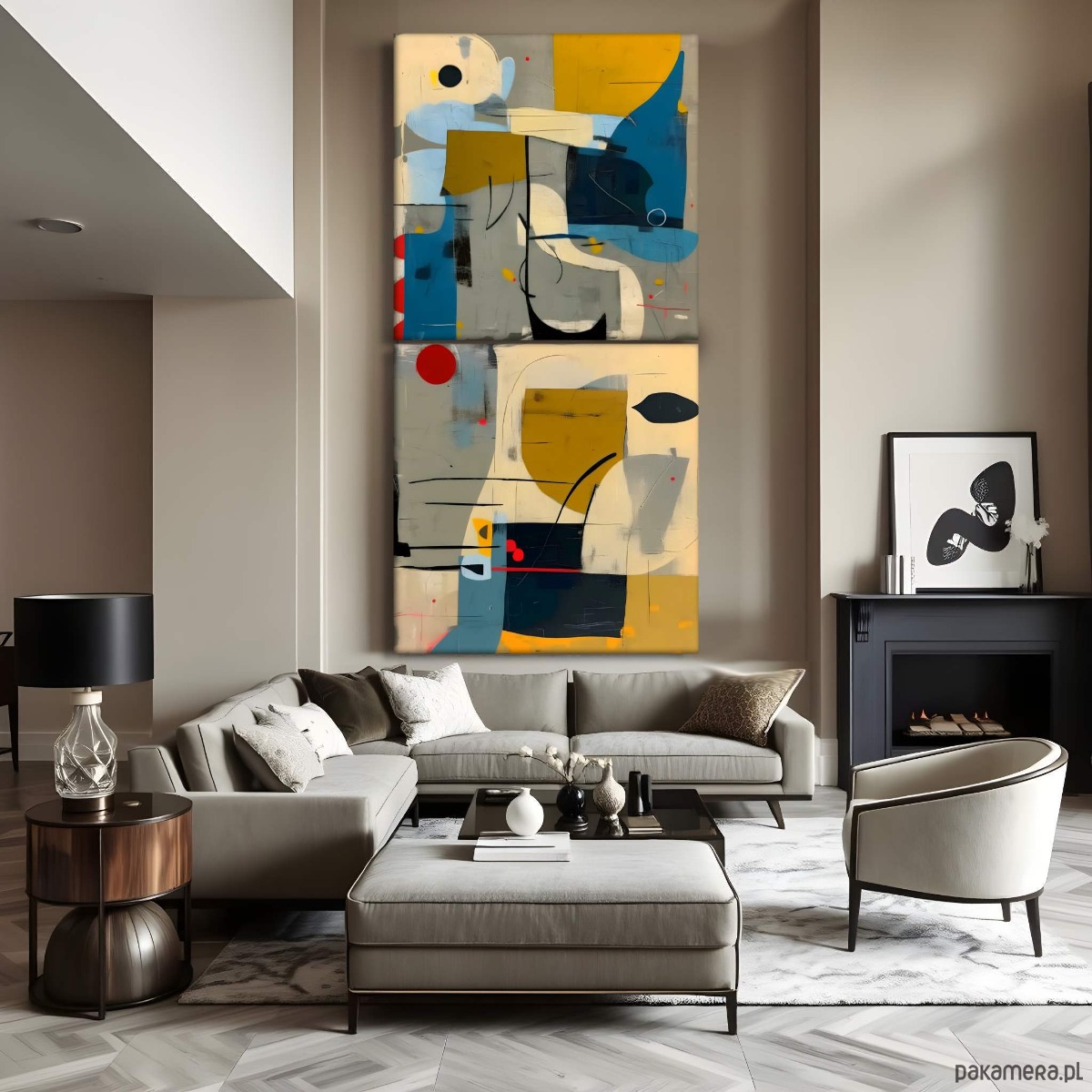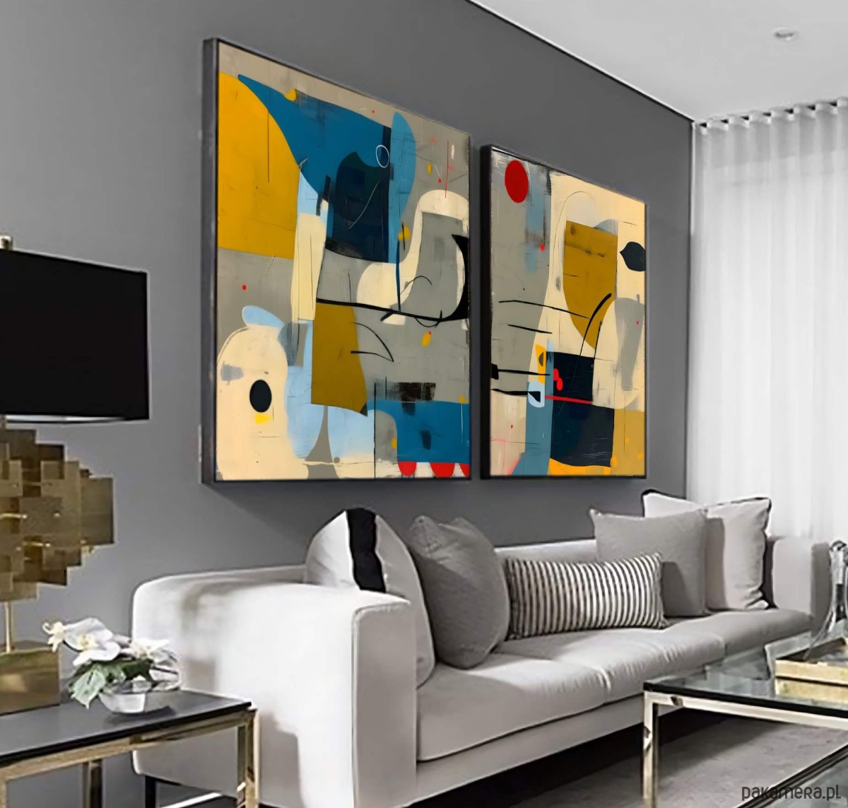 -> powiesić osobno na różnych ścianach jako nawiązujące do siebie elementy dekoracji co scala wnętrze