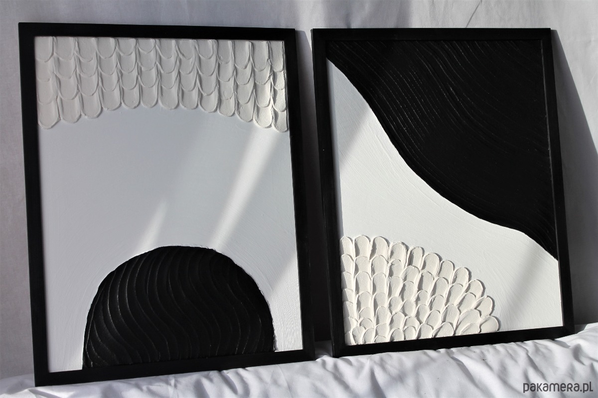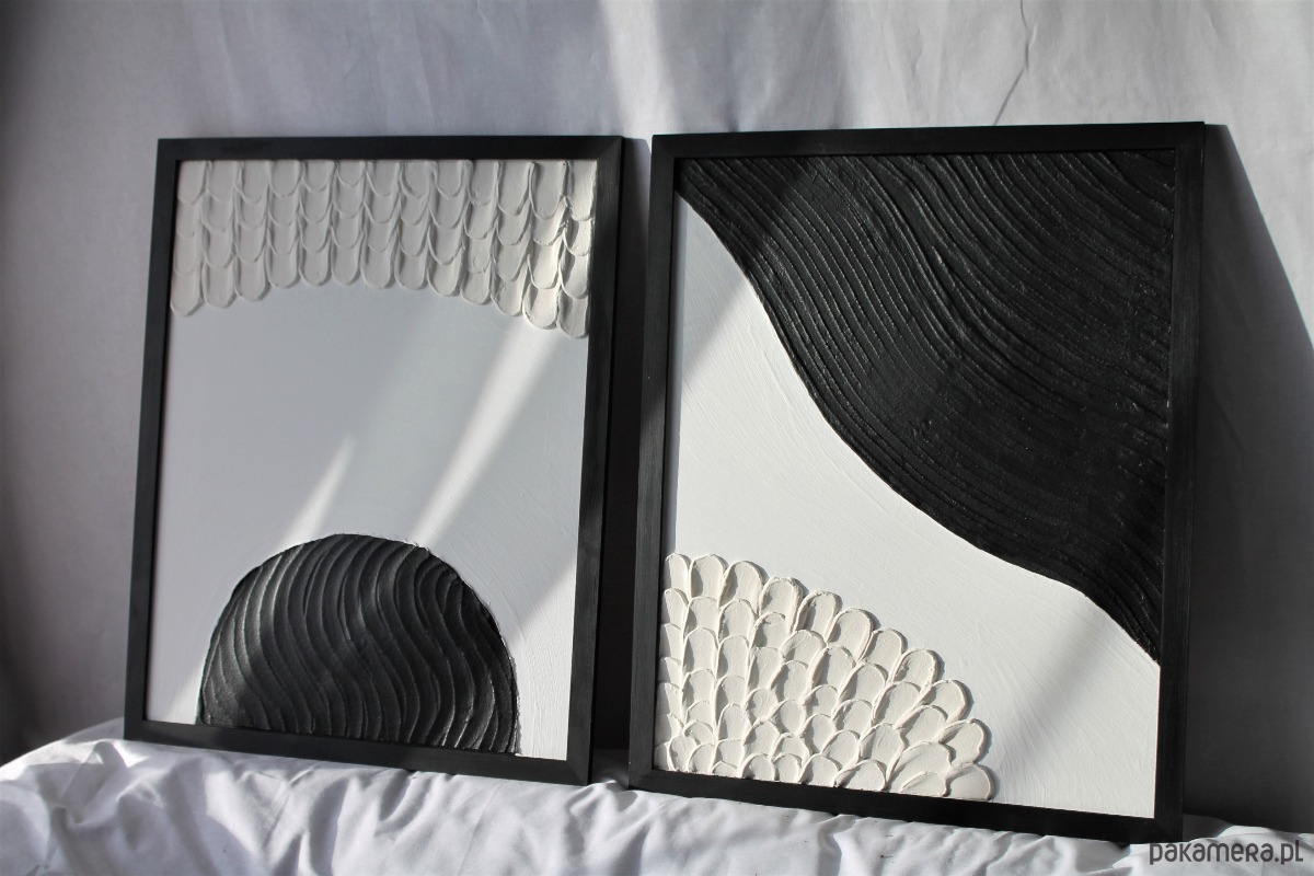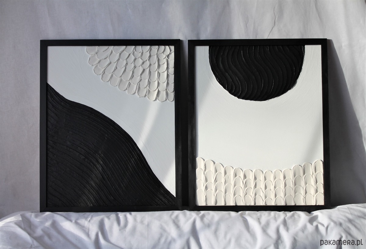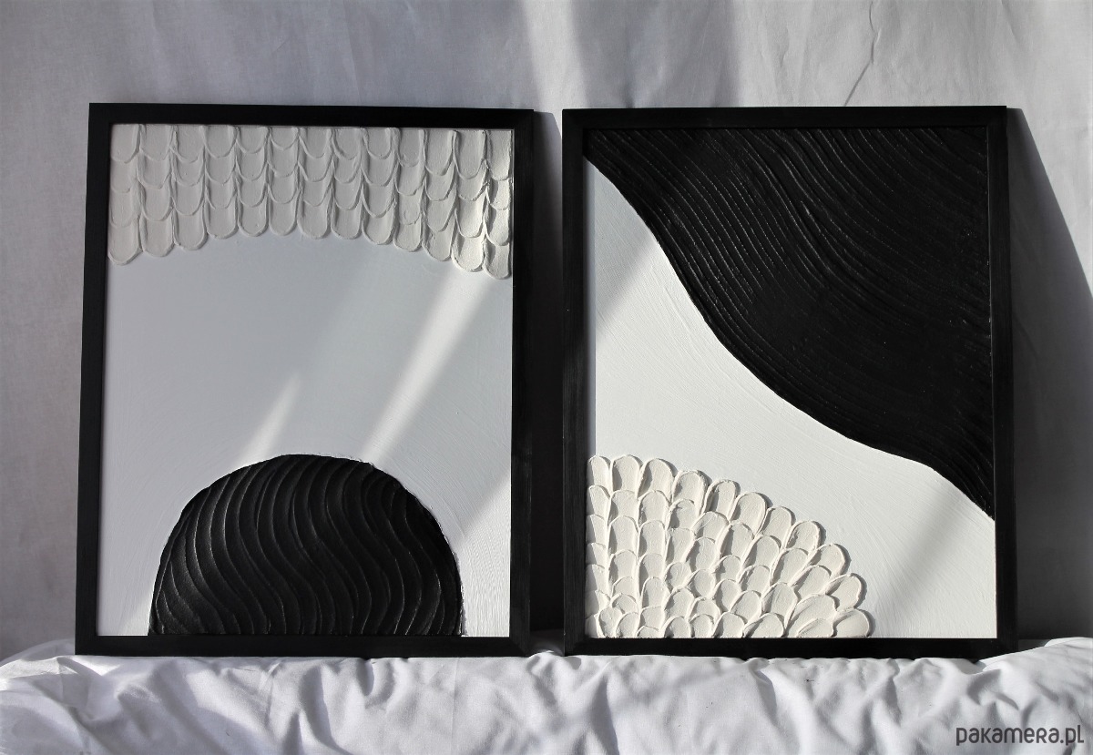 Komplet obrazów teksturowanych w ponadczasowych kolorach, z kolekcji: struktura. Obrazy są ręcznie wykonane, co gwarantuje unikalność produktu. Nikt inny nie będzie posiadał dokładnie takiego samego obrazu w swoim domu.