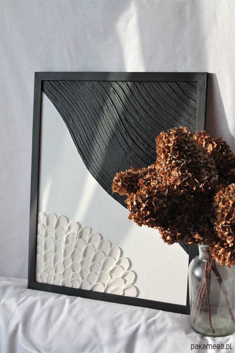 Moje obrazy mają efektowną strukturę wykonaną autorską techniką. Wykonane są na płycie, w drewnianej ramie. Bardzo efektowne można je powiesić w dowolnym kierunku, zarówno w pionie, w poziomie.