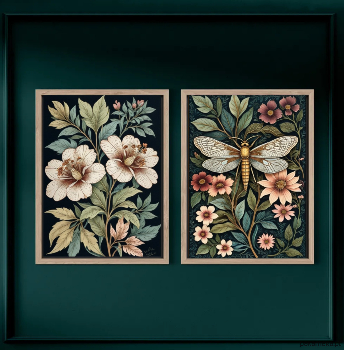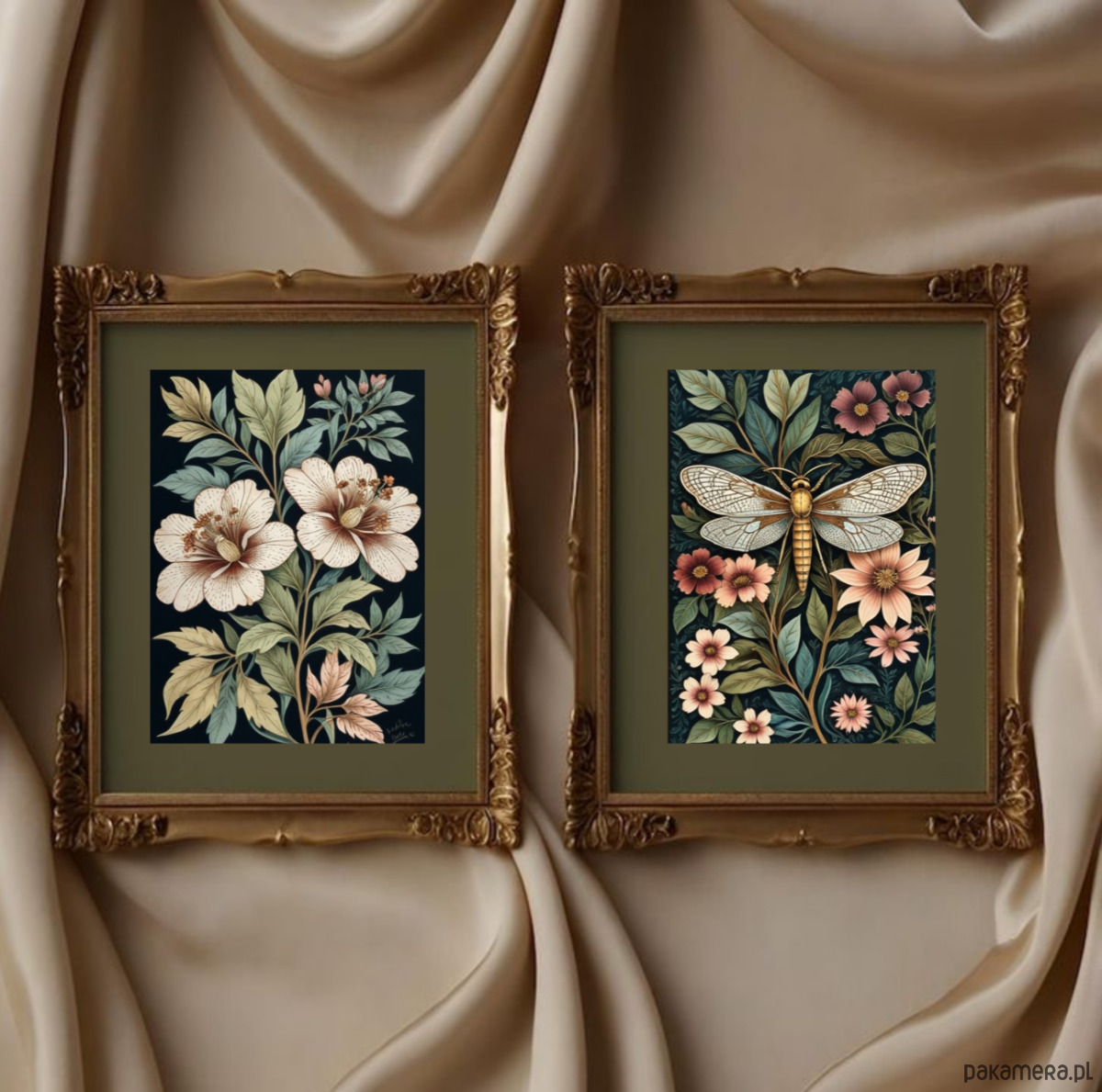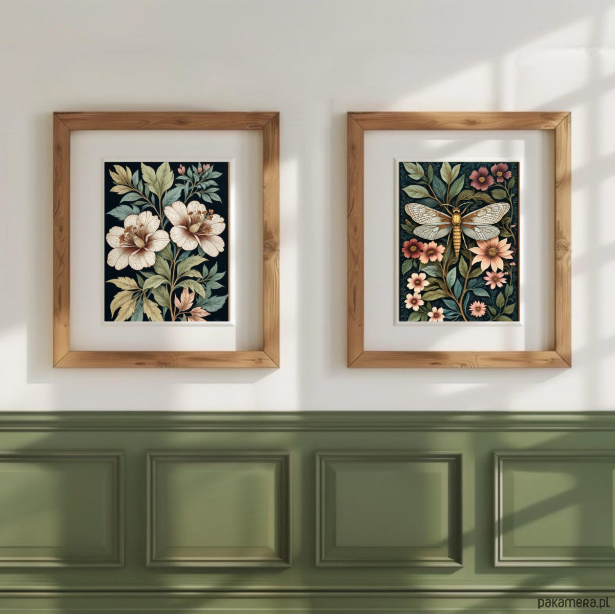 DWA PLAKATY galeria botaniczne kwiaty ważka