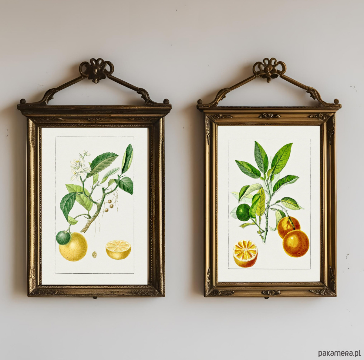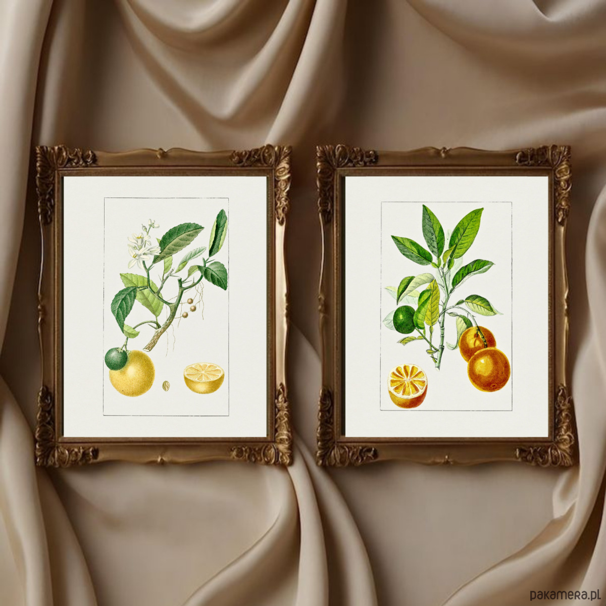 DWA PLAKATY galeria botaniczne owoce cytrusowe