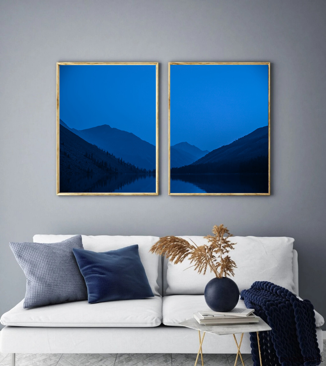 DWA PLAKATY zdjęcie góry granatowe niebieskie