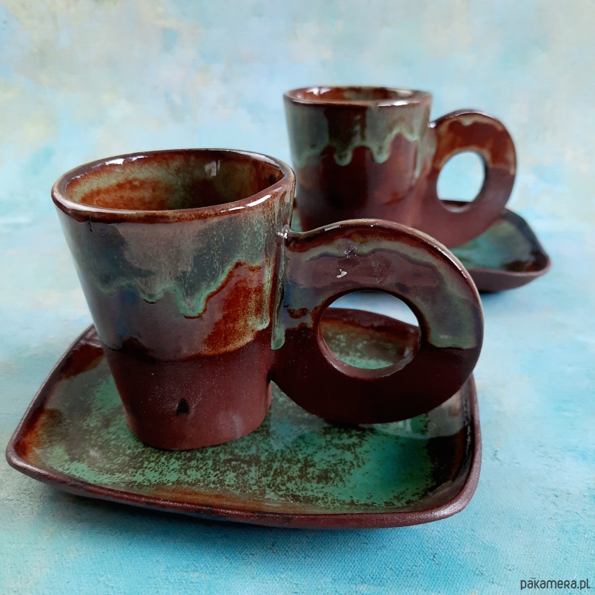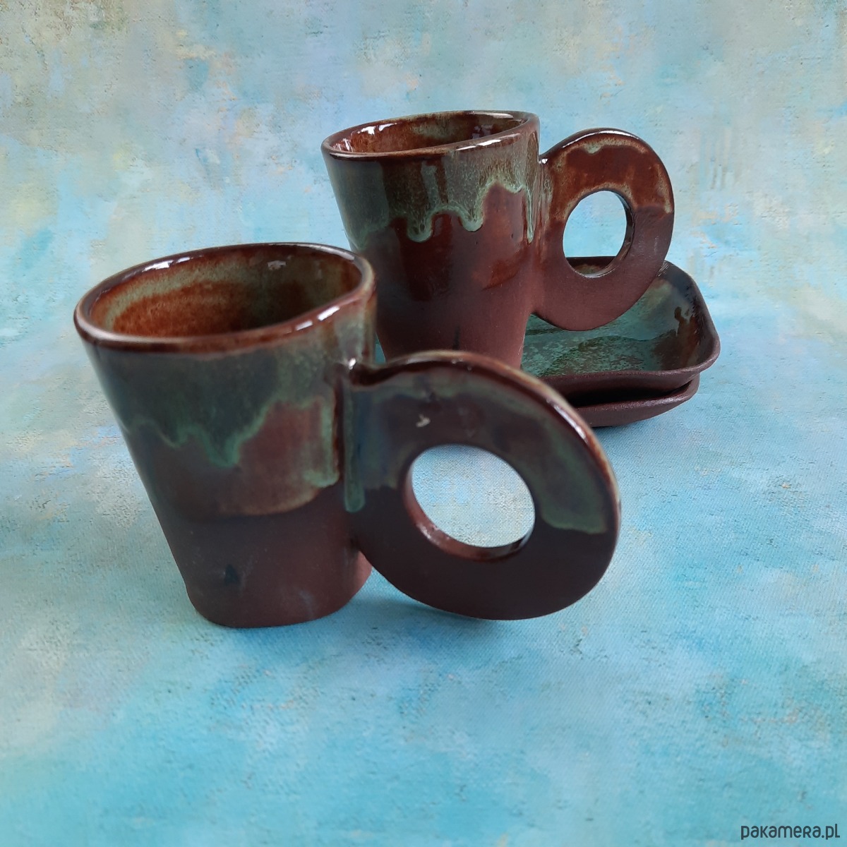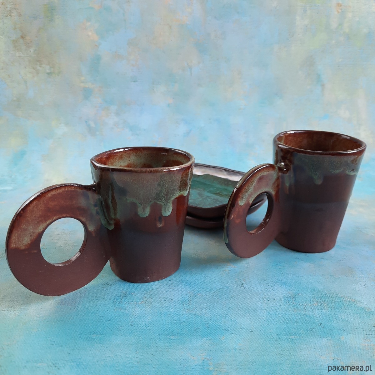 Dwie ręcznie robione eramiczne filizanki do double espresso