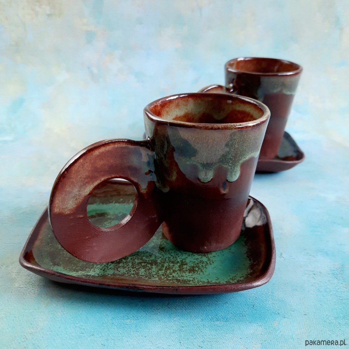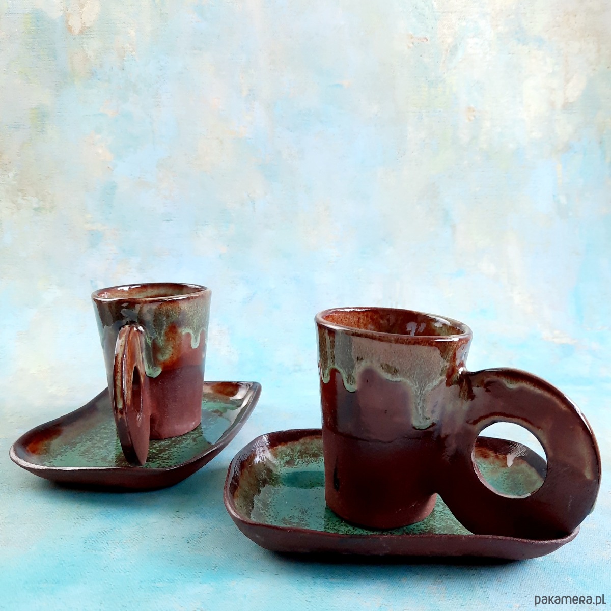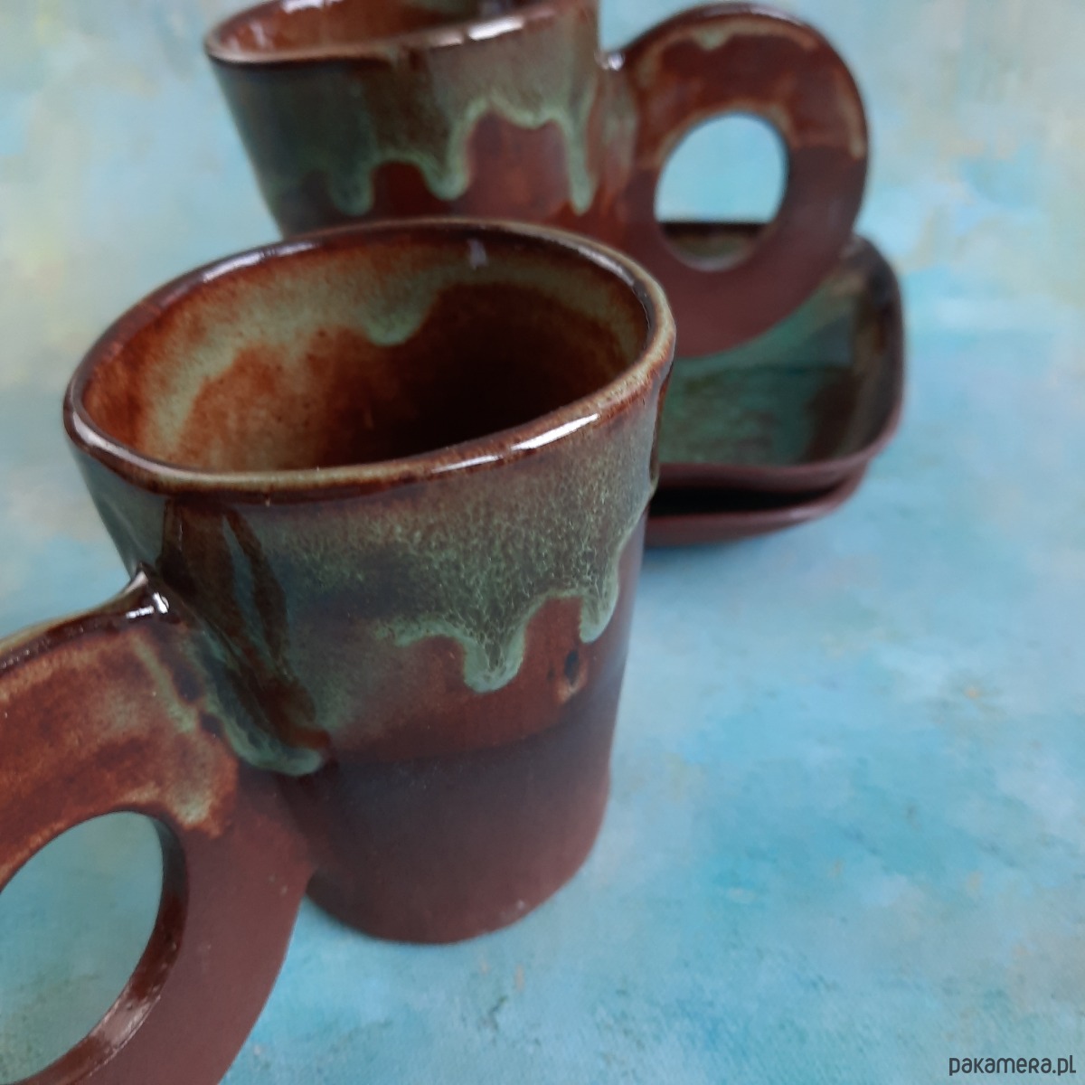 Dwie ręcznie robione eramiczne filizanki do double espresso