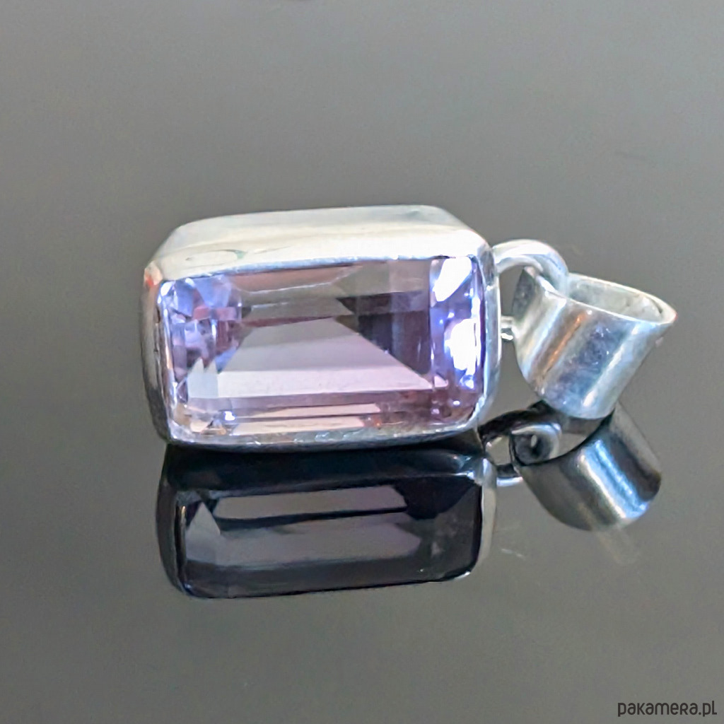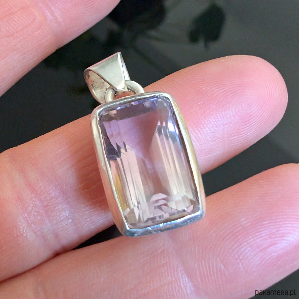 Szlachetny wisiorek wykonany ze srebra próby 925 oraz pięknego ametrynu o pasteloeych barwach. Ten piękny minerał to odmiana kwarcu, będąca połączeniem ametystu i cytrynu, okaz bardzo przejrzysty, szlifowany. Wymiary oprawy 20 x 13 mm. Długosc max 30 mm, waga 9 gramów. Wykonany przez dostawcę kamieni, zostanie wysłany w ozdobnym pudełeczku.