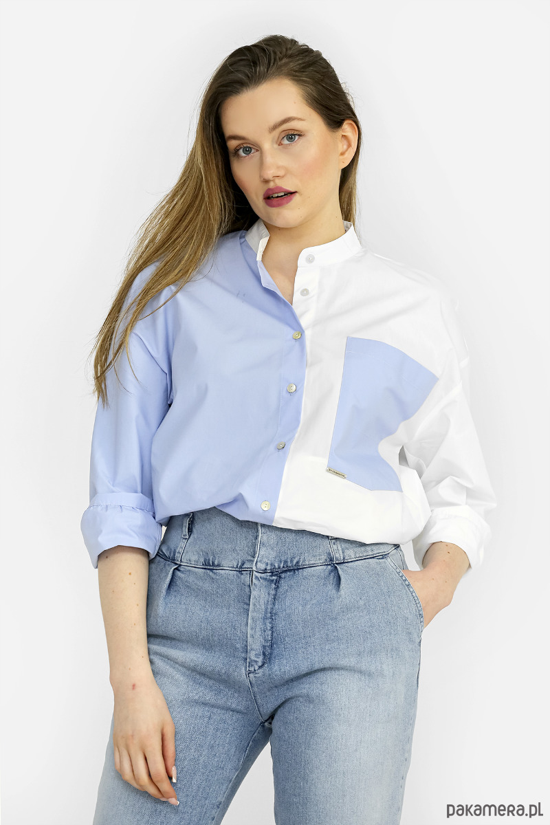 DORA – dwukolorowa koszula ze stójką.