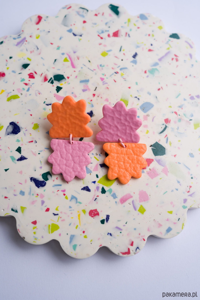 Dwukolorowe wiszące sztyfty z fakturą. Subtelne, delikatne rękodzieło na codzień i na specjalne okazje. Kolczyki są wykonane, z najwyższą precyzją, przy użyciu starannie dobranych, wysokiej jakości materiałów.