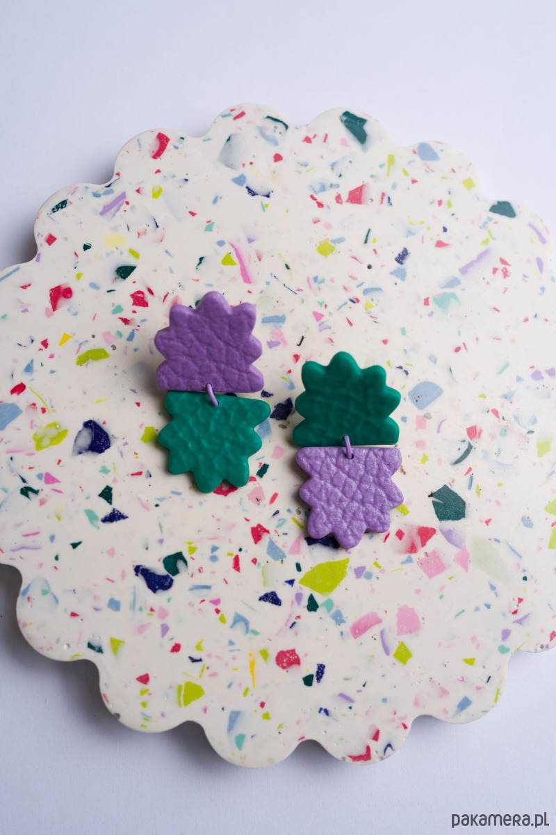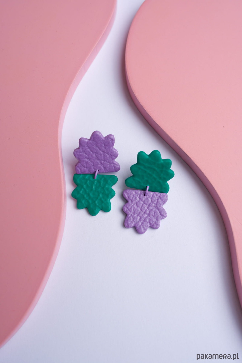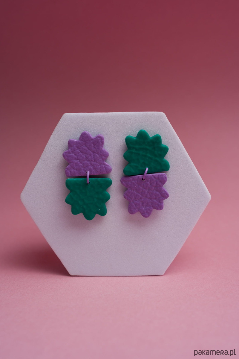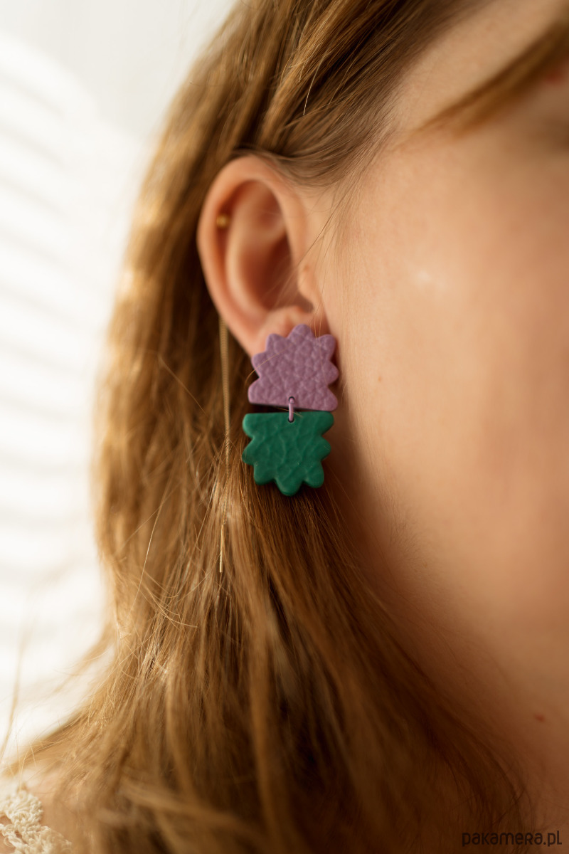Dwukolorowe wiszące sztyfty z fakturą. Subtelne, delikatne rękodzieło na codzień i na specjalne okazje. Kolczyki są wykonane, z najwyższą precyzją, przy użyciu starannie dobranych, wysokiej jakości materiałów.