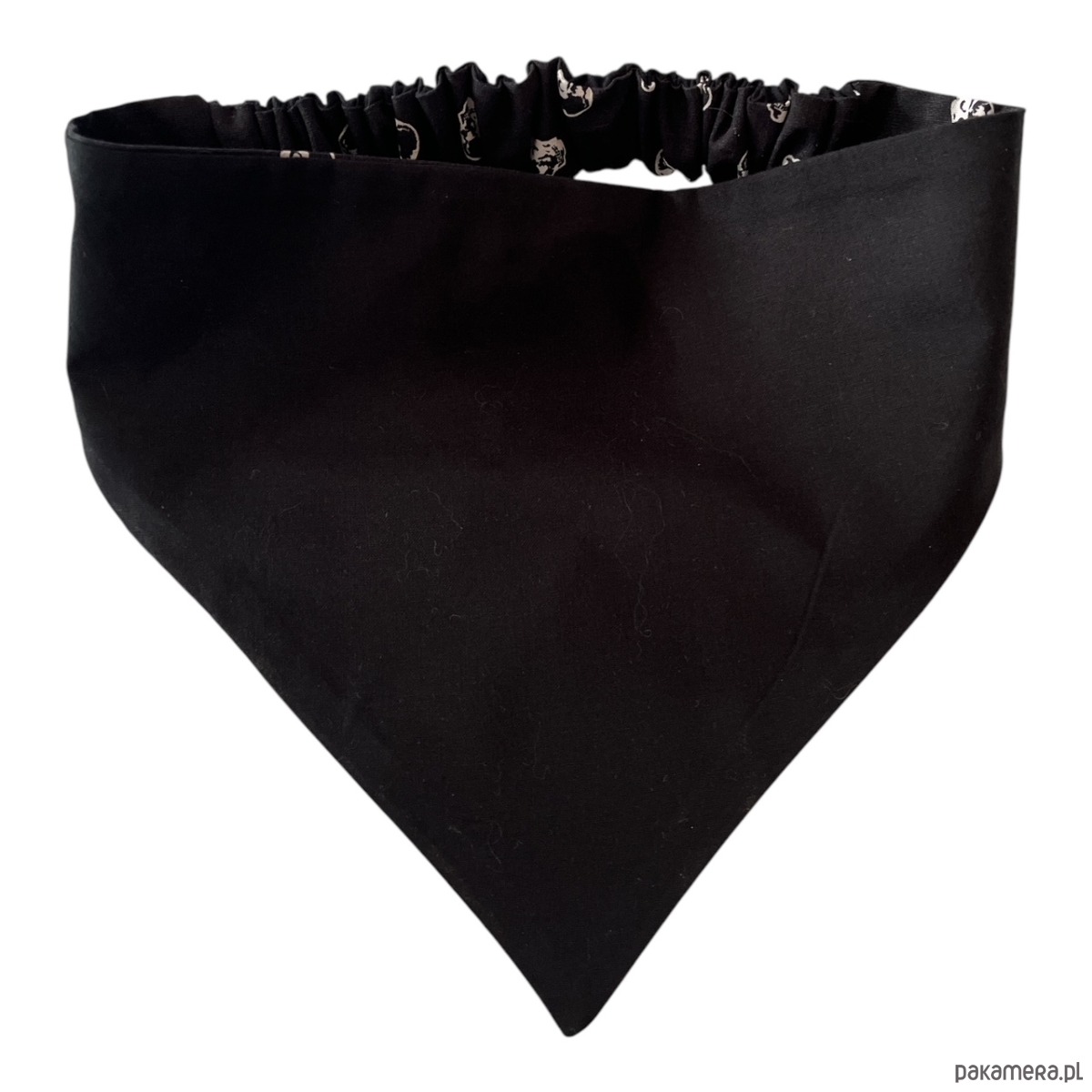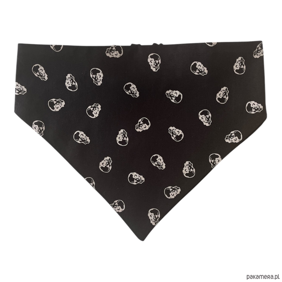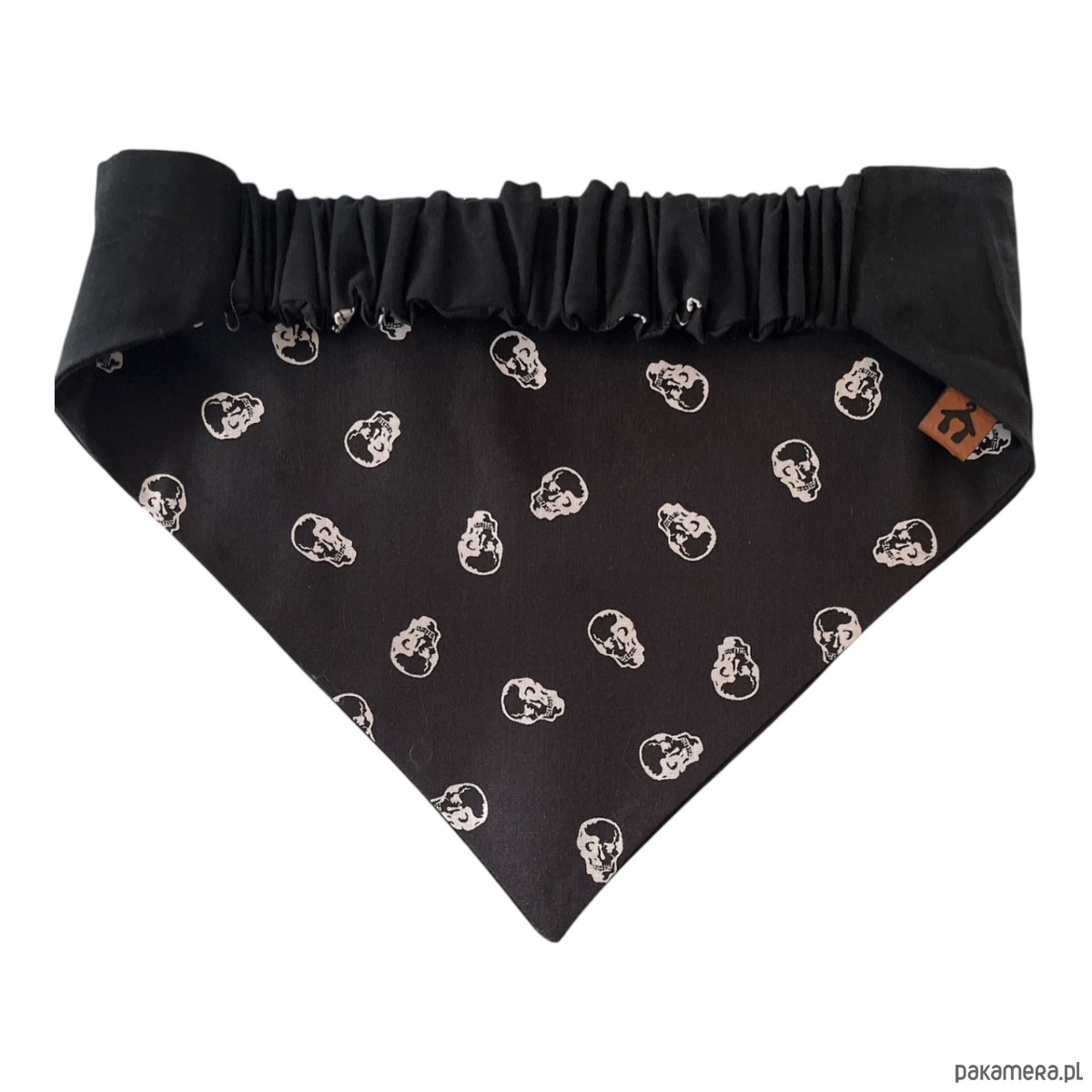Stylowa i wygodna bandana na gumce dla psa lub kota! Z jednej strony czarna bawełna, a z drugiej biały wzór czaszek na czarnym tle. Wykonana z 100% certyfikowanej bawełny OEKO-TEX, jest bezpieczna i komfortowa dla Twojego pupila. Dzięki elastycznej gumce łatwo się zakłada i dopasowuje do szyi zwierzaka, zapewniając wygodę noszenia.