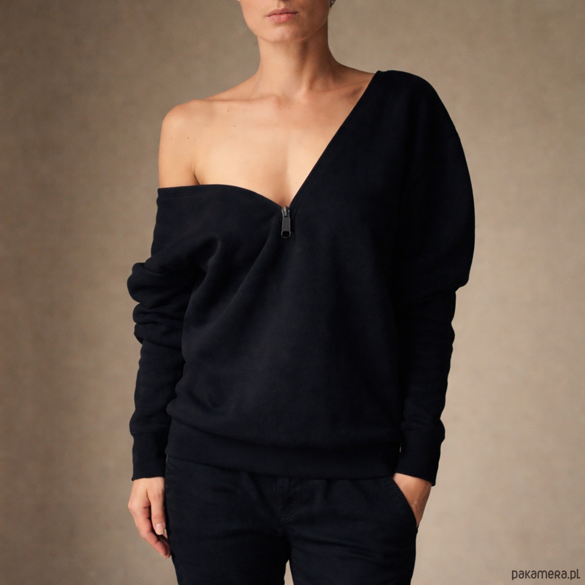 Wyjątkowa, oryginalna bluza z suwakiem od połowy pleców do połowy przodu.