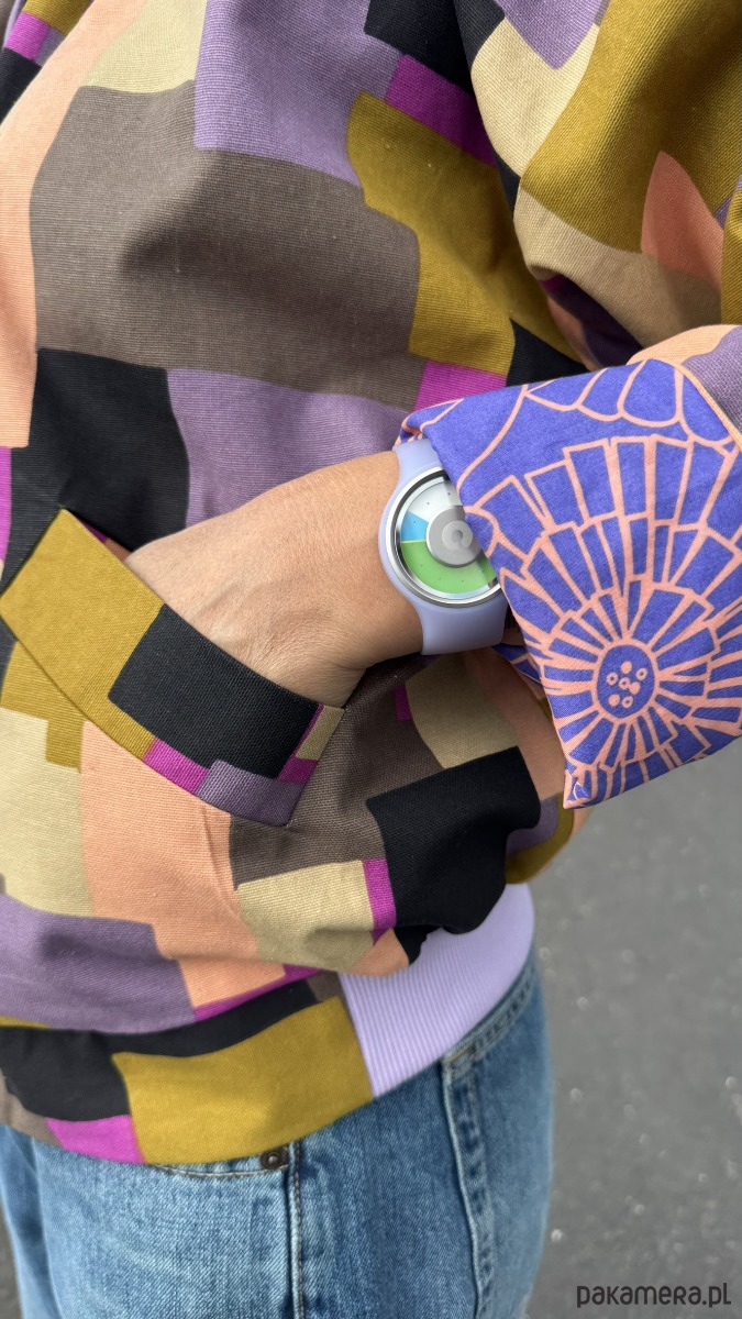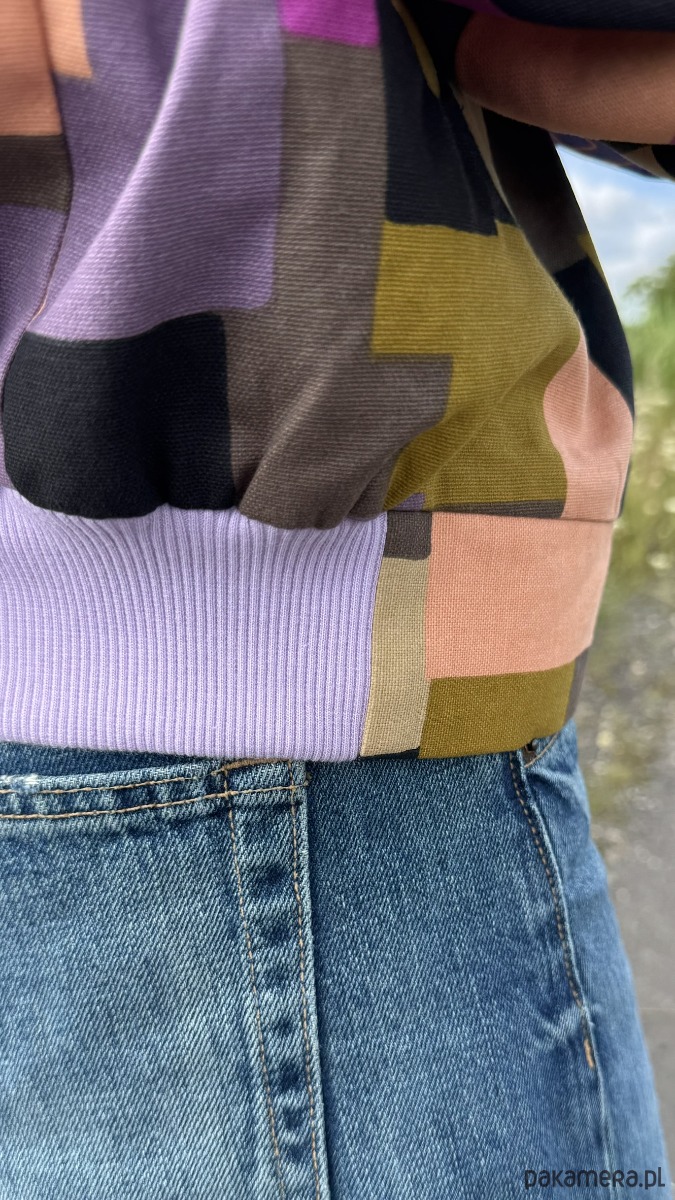 Na dole fioletowy ściągacz, który trzyma fason i podkreśla sylwetkę, a duże, wpuszczane kieszenie pomieszczą telefon, słuchawki i wszystko, co musisz mieć pod ręką.
