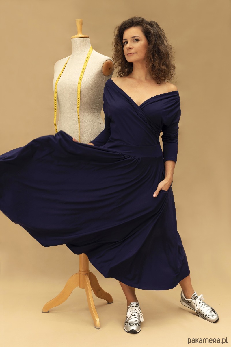 Sukienka kopertowa dwustronna jest nowym projektem w pracowni projektantki.