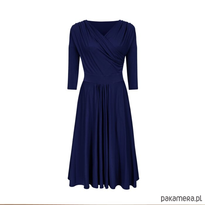 – sukienka o kroju pozwalającym nosić ją dekoltem tył na przód!