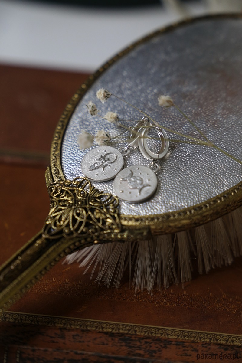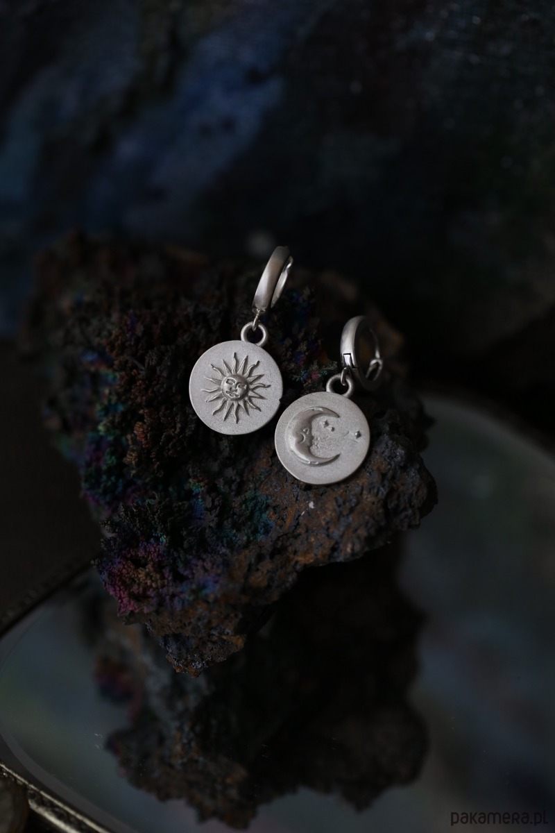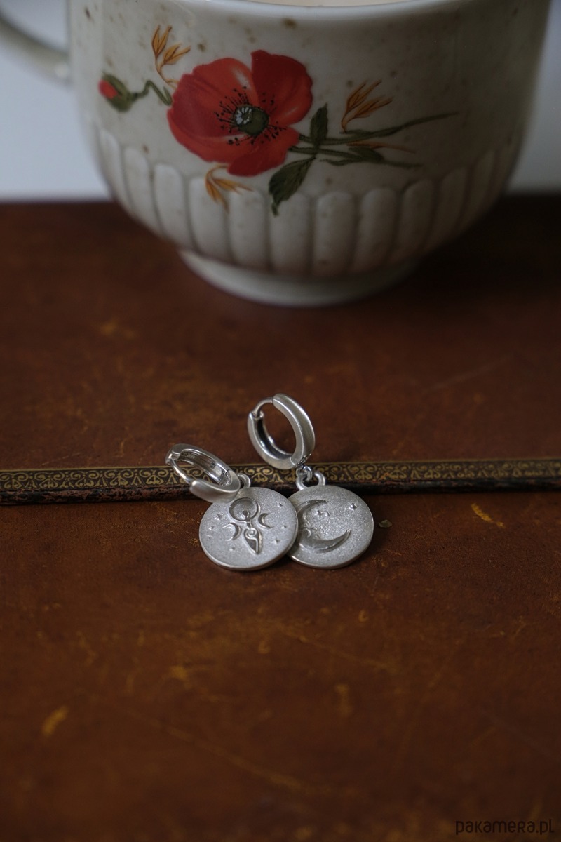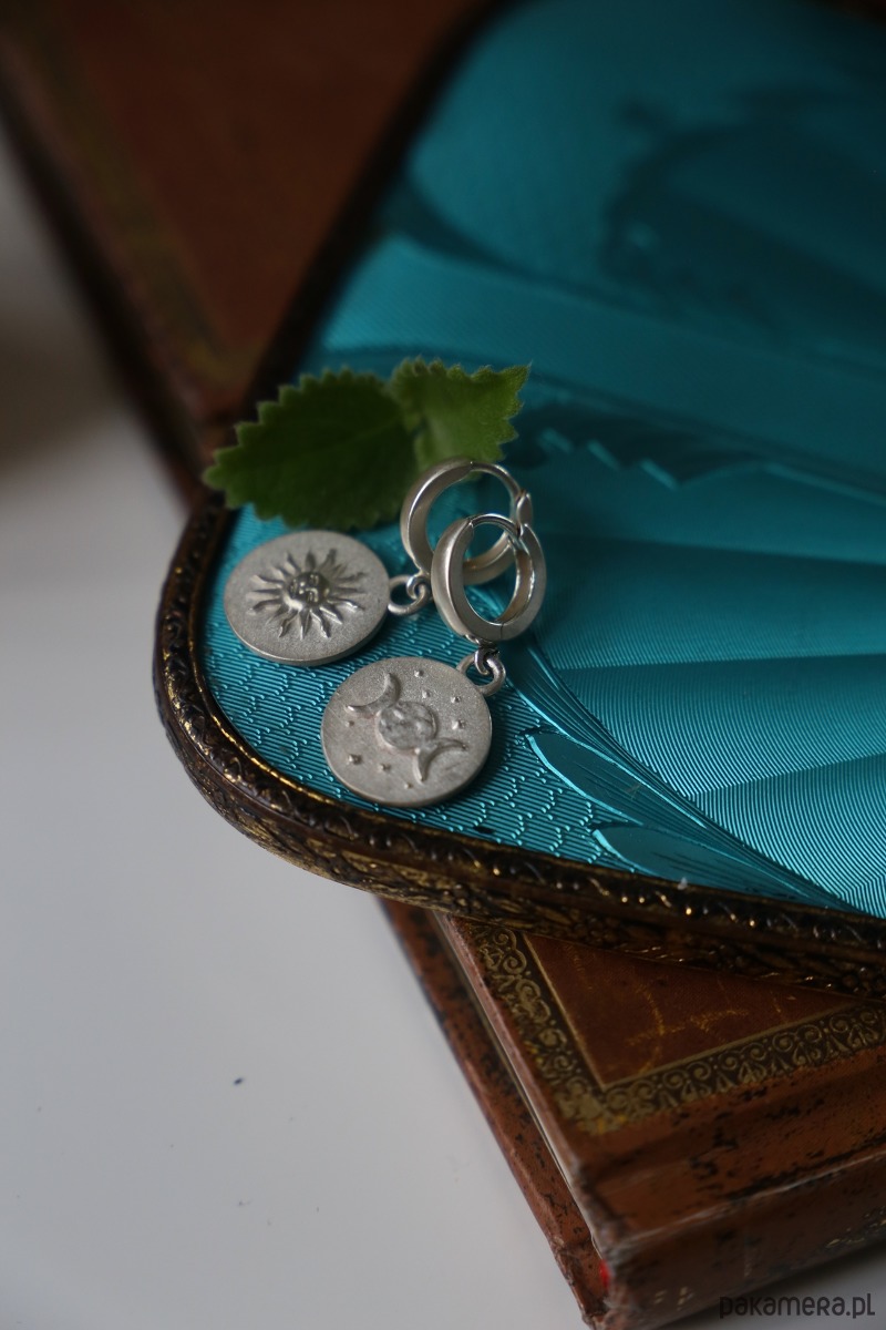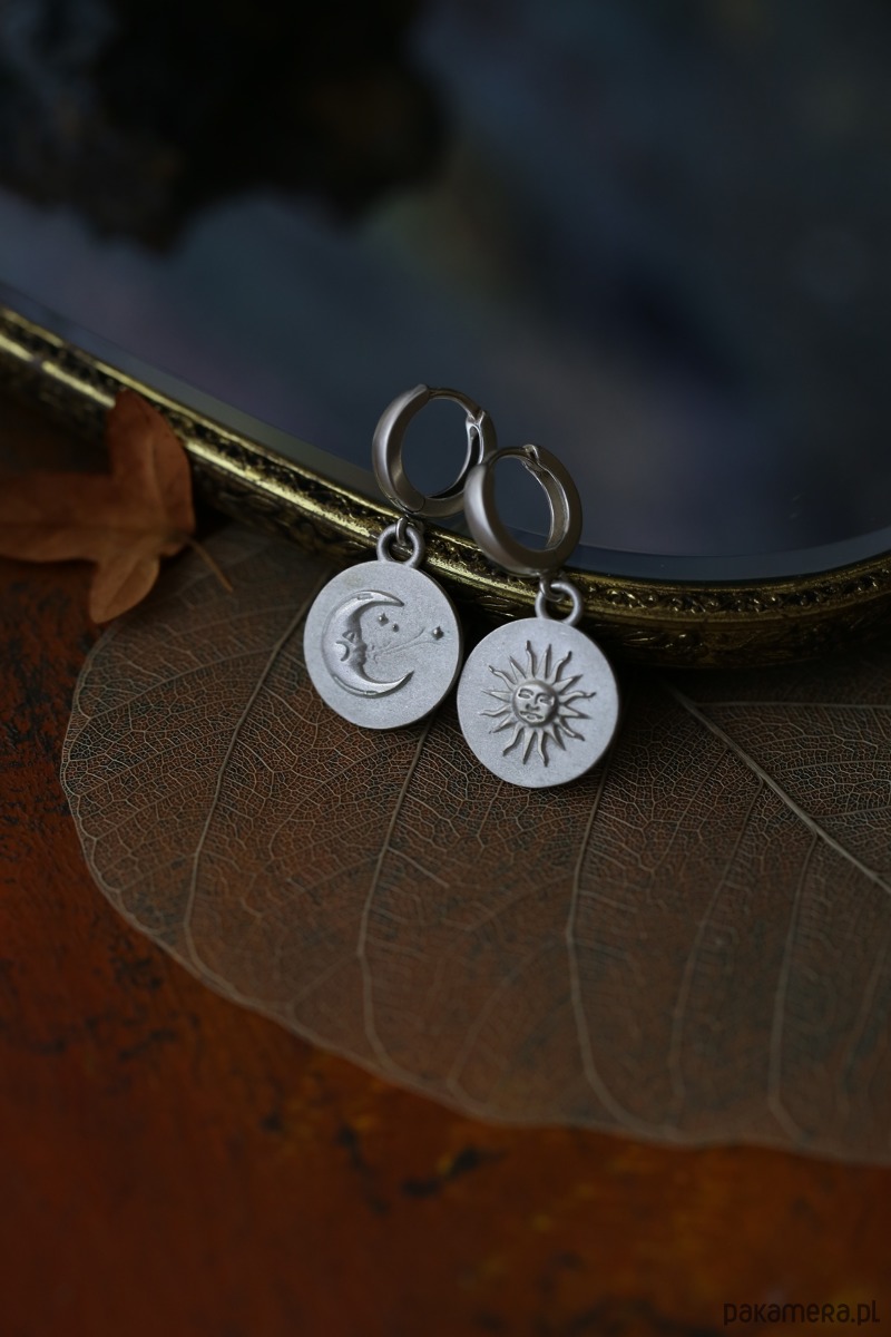 Kolczyki z Księżycem i Słońcem dostępne są w trzech odcieniach: srebrny, złoty, postarzane srebro. Odnajdziesz je w moim butiku wraz z wisiorkami i bransoletkami z tym samym motywem.