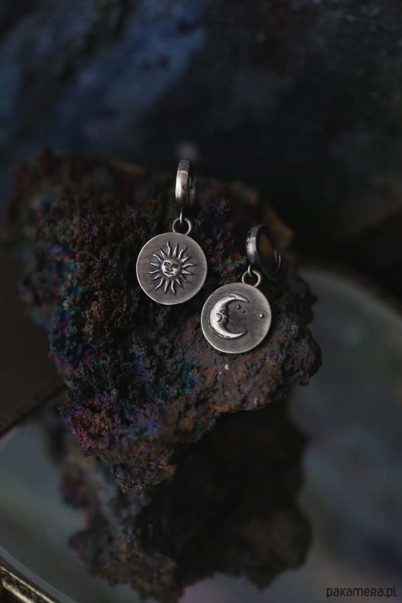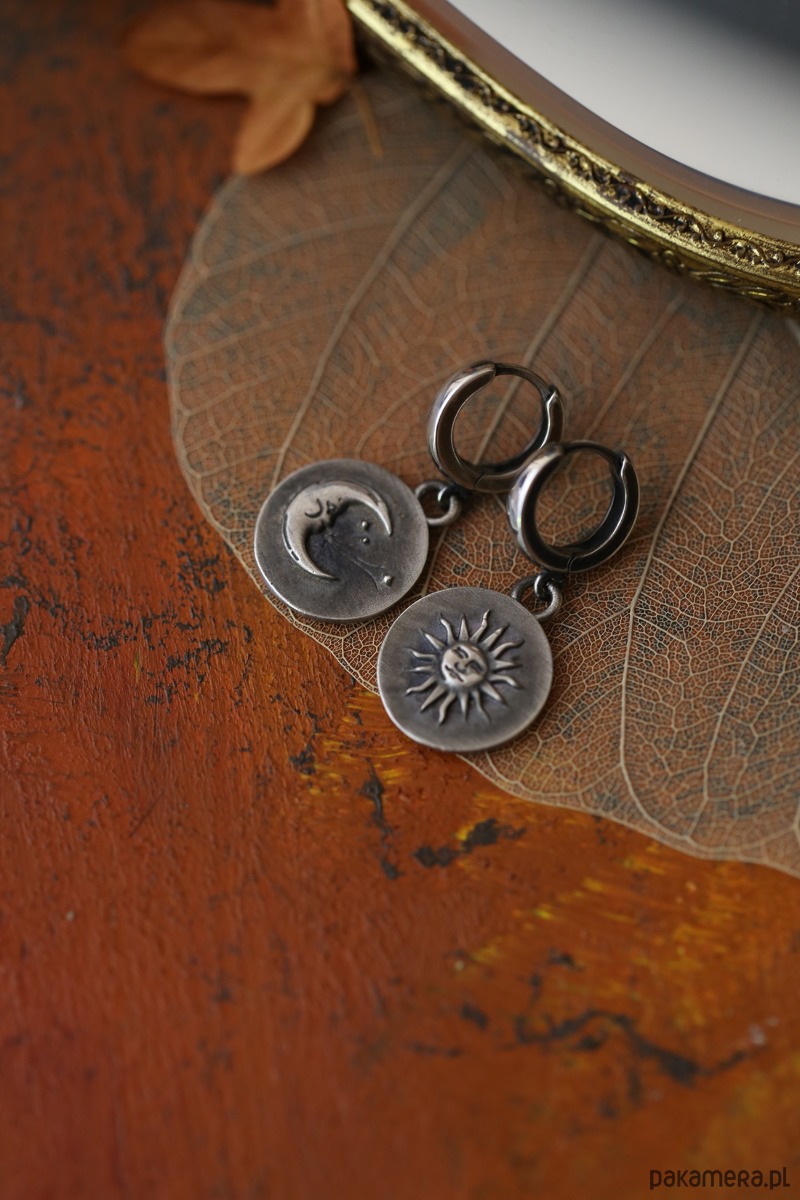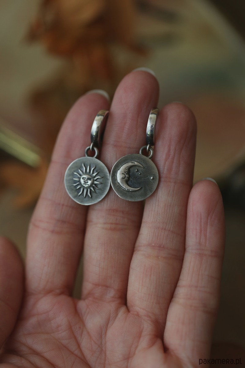 Kolczyki z Księżycem i Słońcem dostępne są w trzech odcieniach: srebrny, złoty, postarzane srebro. Odnajdziesz je w moim butiku wraz z wisiorkami i bransoletkami z tym samym motywem.