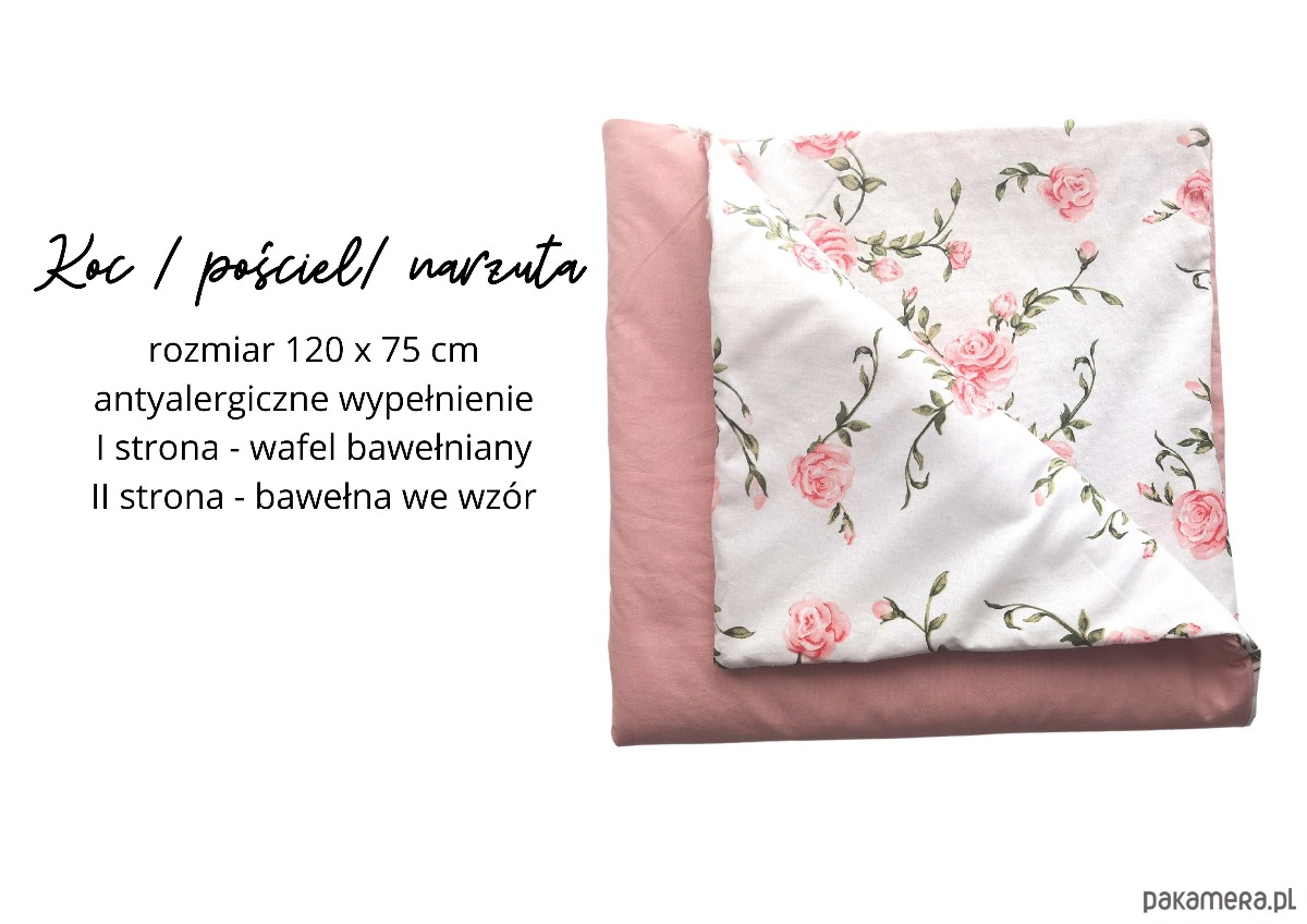 Kompletujesz zestaw wyprawkowy? Nie może w nim zabraknąć tego produktu:) To koc ale z wypełnieniem (antyalergicznym) więc może służyć nie tylko do drzemek w ciągu dnia ale i jako pościel. Ma nietypowy rozmiar - 120 cm długości (zazwyczaj jest to 100 x 75cm) dzięki czemu może być narzutą w łóżeczku. Sprawdzi się również jako mata do zabaw. Ze względu na swoją długość będzie idealnie nadawał się jako kocyk do spacerówki. Kocyk jest dwustronny - jedna strona to gruba tkanina bawełniana o ciekawej fakturze, a druga to bawełna w piękny wzór . Do kocyka można dobrać poduszeczkę min. w kształcie misia, serca, skrzydeł, prześcieradło, rożek, wkładkę do spacerówki). Chcesz stworzyć harmonijną przestrzeń dla swojego maluszka? Z nami skompletujesz wyjątkowy zestaw wyprawkowy.