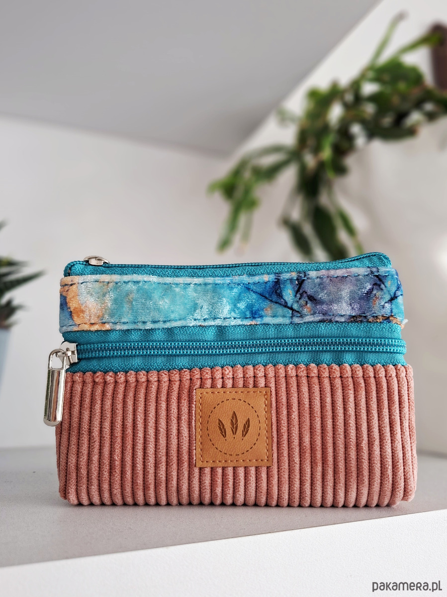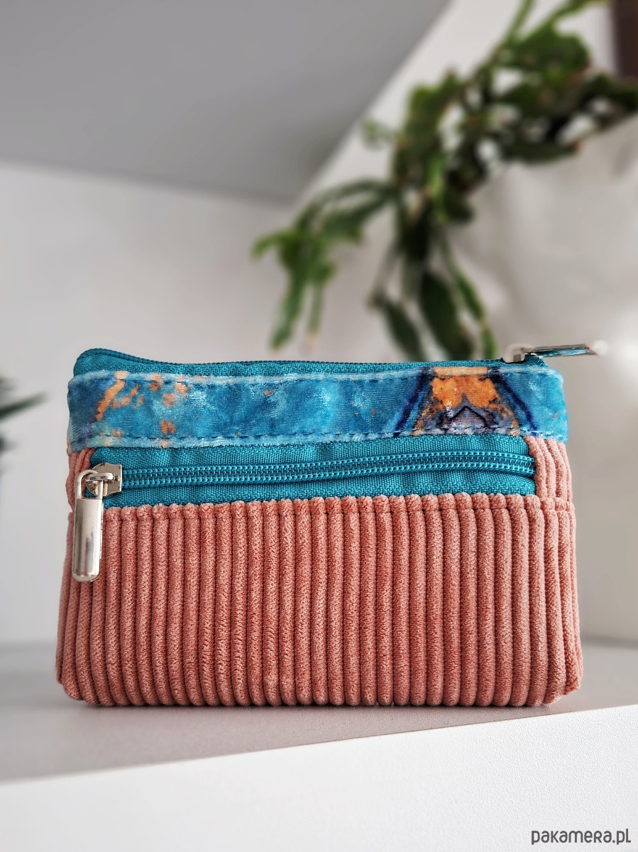 Dwustronny kolorowy portfel ze sztruksu