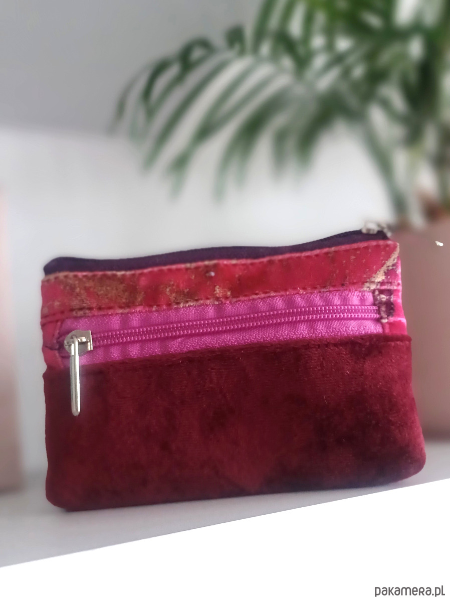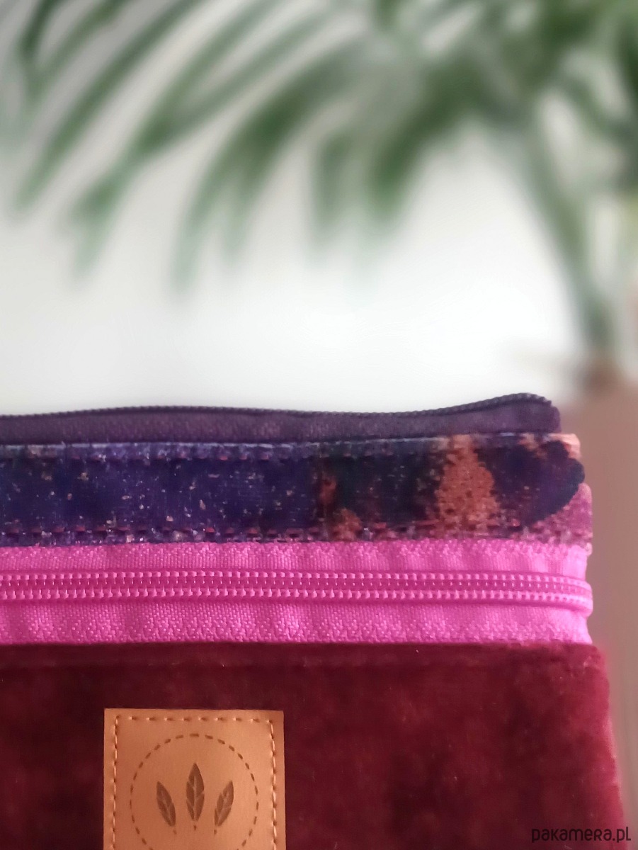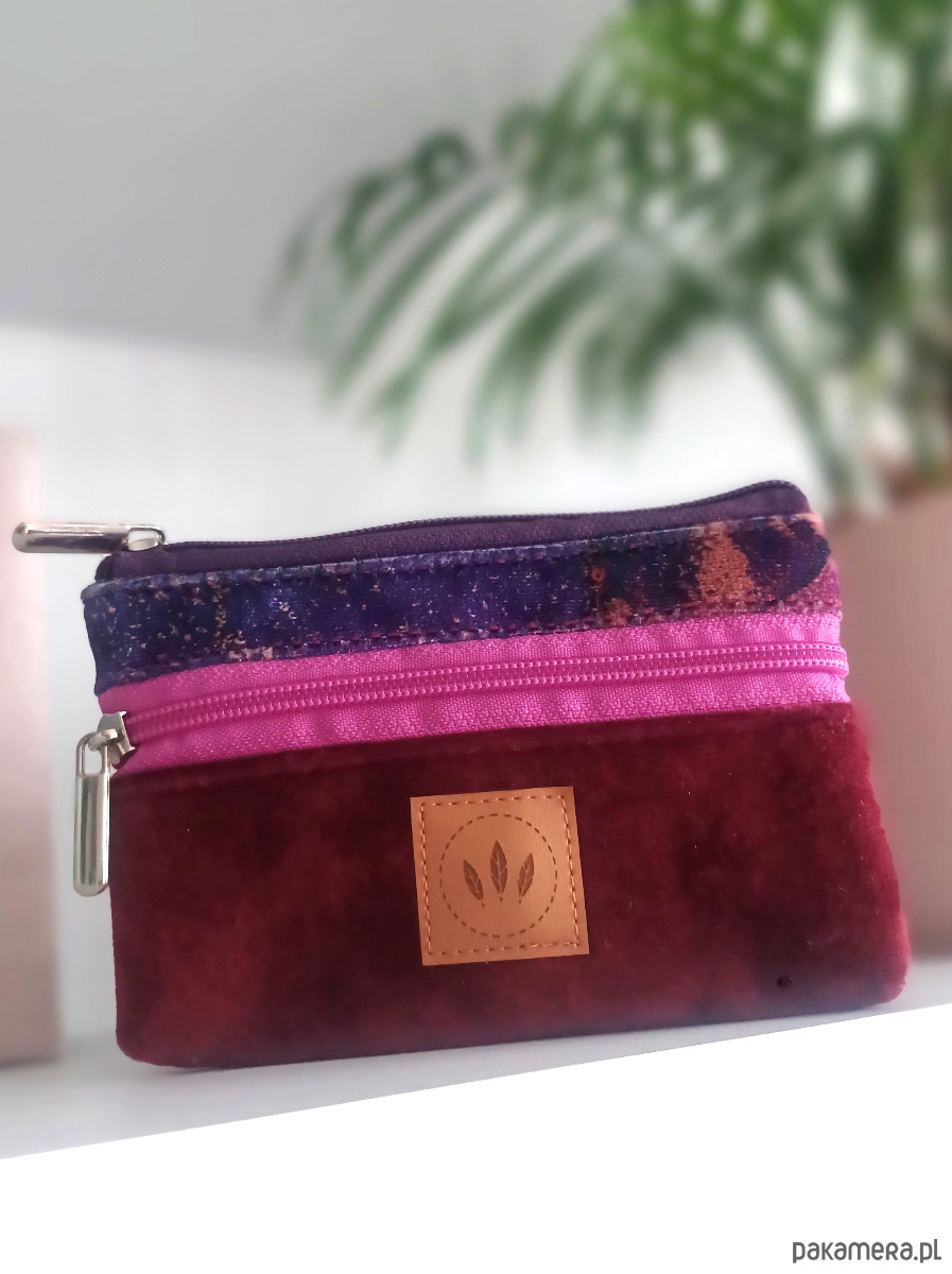Ręcznie robiony nieduży portfel mieszczący karty, dokumenty i banknoty/drobne. Posiada komorę główną oraz kieszonki na zamek po obu stronach portfela. Idealny w duecie z naszymi nerkami. Nie zajmuje dużo miejsca i jest leciutki. Wodoodporna podszewka zabezpiecza wnętrze przed wilgocią. Zamki w kolorze śliwkowym i różowym z wygodnymi suwakami.