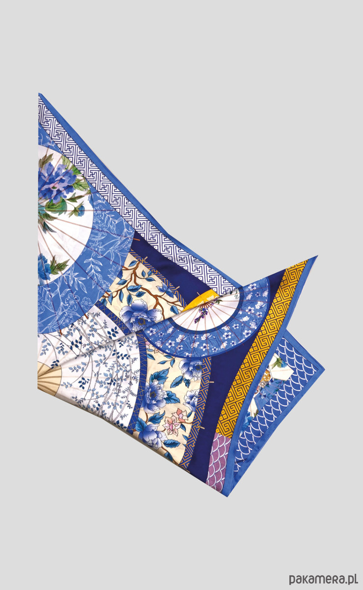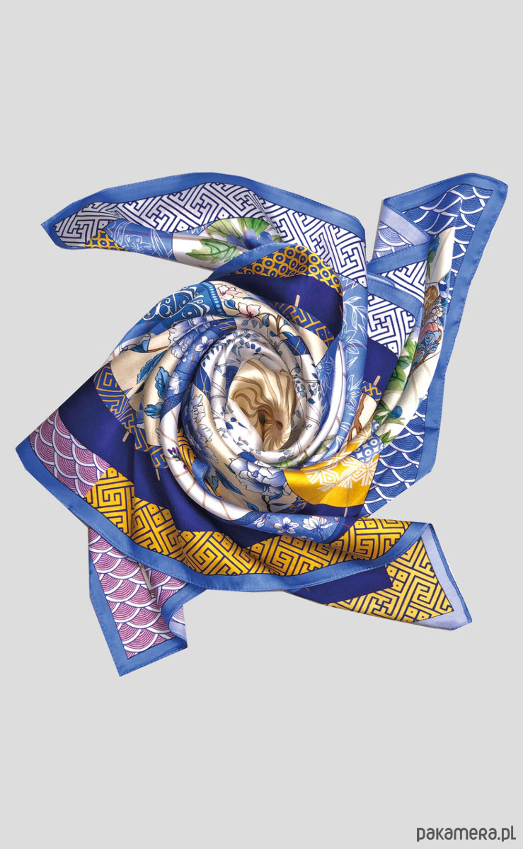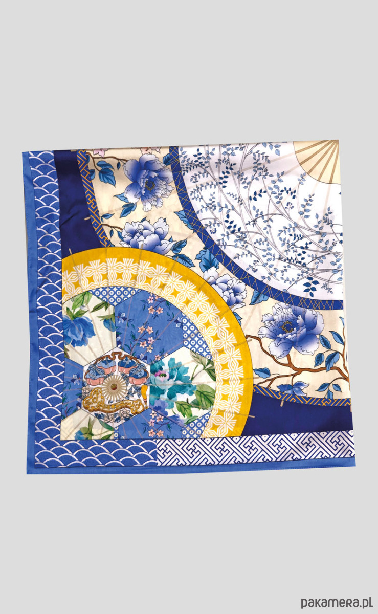 Duża ekskluzywna apaszka, wykonana z wysokiej jakości jedwabiu. Apaszka wielokolorowa we wzory kwiatowe. Idealnie sprawdzi się do codziennych kreacji.