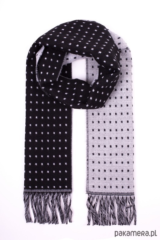Dwustronny szal Szalik Męski w Kropki - Szary i Czarny z Poliakrylu