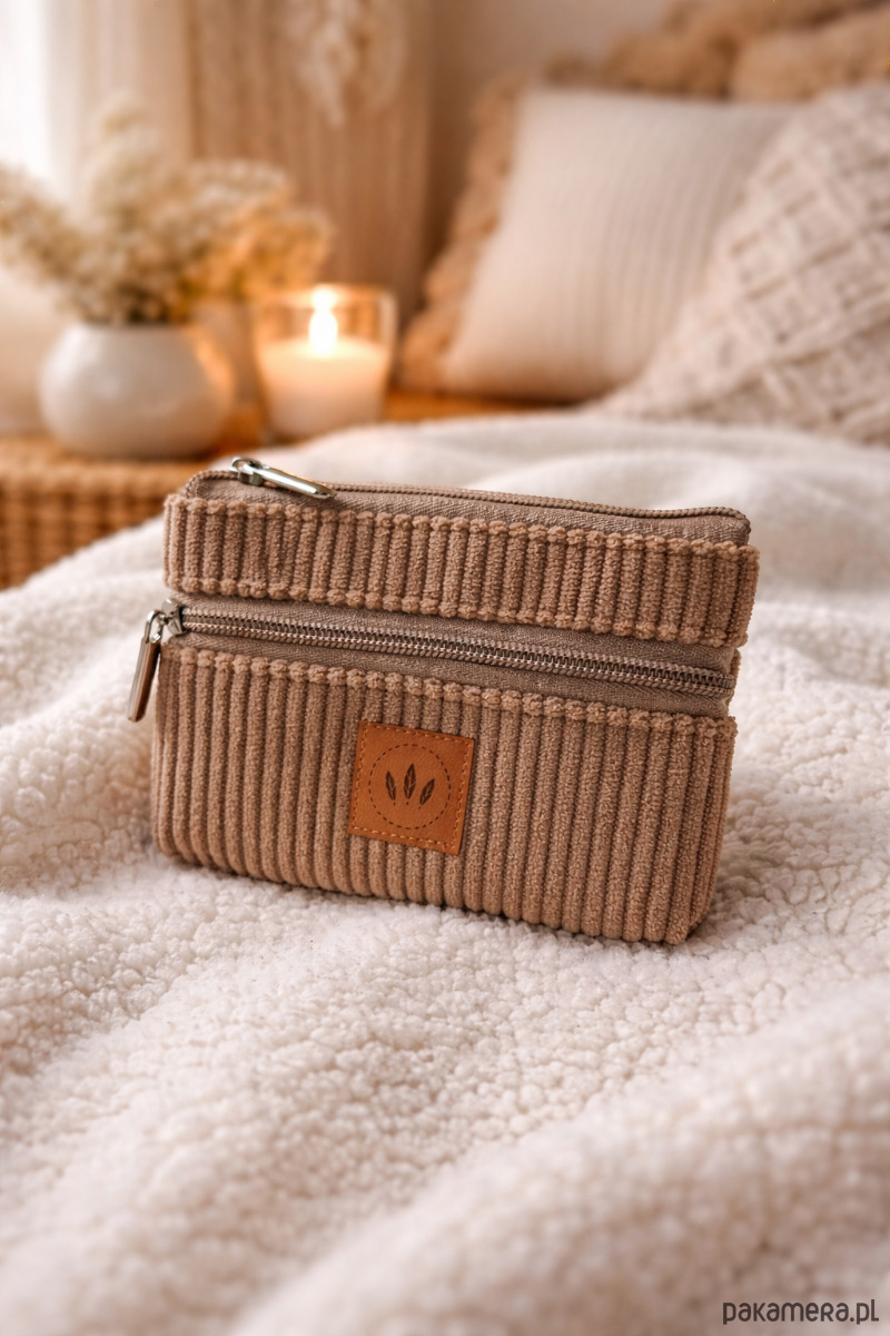 Ręcznie robiony nieduży portfel mieszczący karty, dokumenty i banknoty/drobne. Posiada komorę główną oraz kieszonki na zamek po obu stronach portfela. Idealny w duecie z naszymi nerkami. Nie zajmuje dużo miejsca i jest leciutki. Wodoodporna podszewka zabezpiecza wnętrze przed wilgocią.