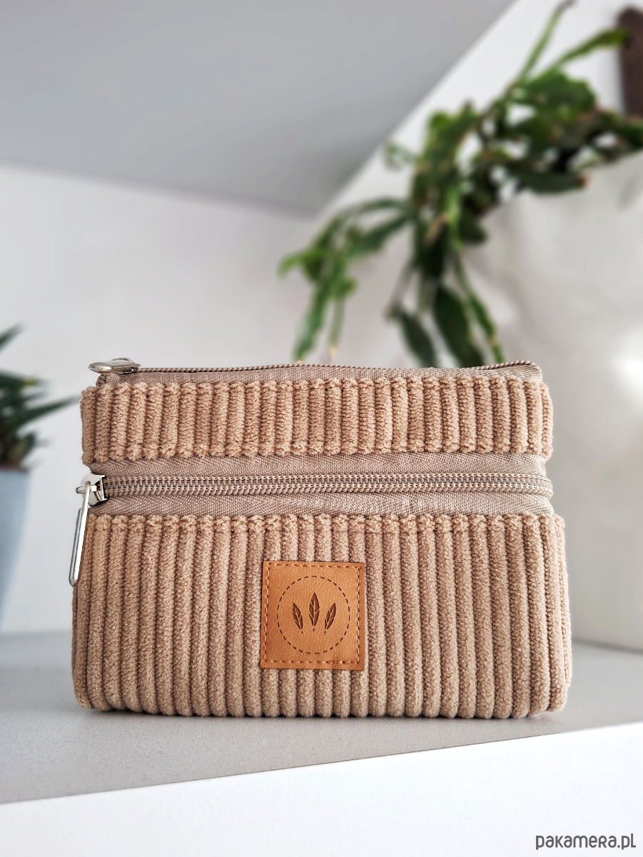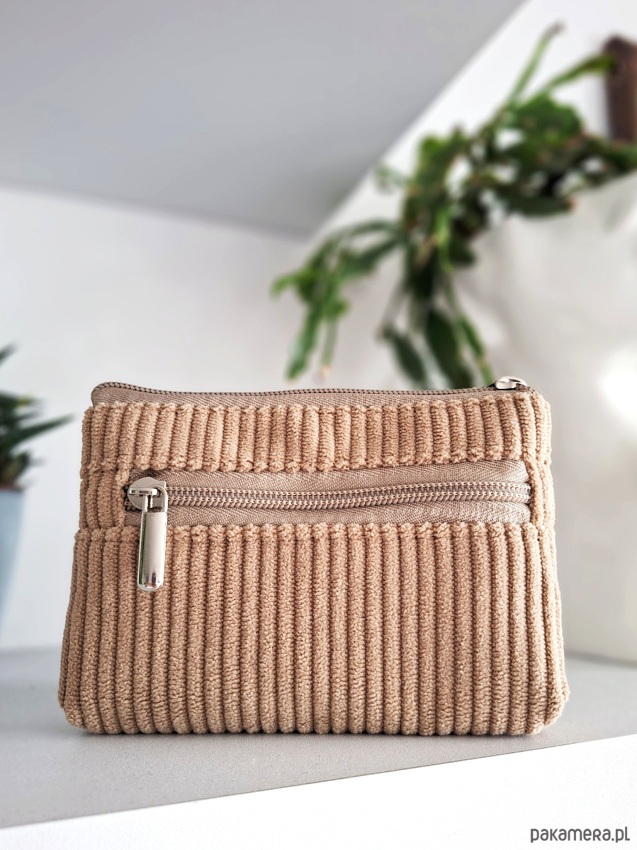 Dwustronny sztruksowy portfel Beżowy