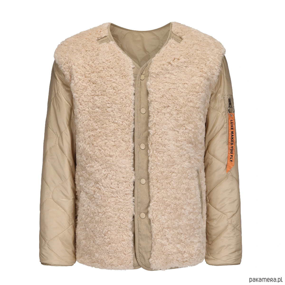 Przytulna, dwustronna pikowana kurtka zapinana na guziki, podszyta miękkim, sztucznym polarem Sherpa. Kieszenie z przodu po pikowanej stronie i elastyczne mankiety chroniące przed zimowym wiatrem.
