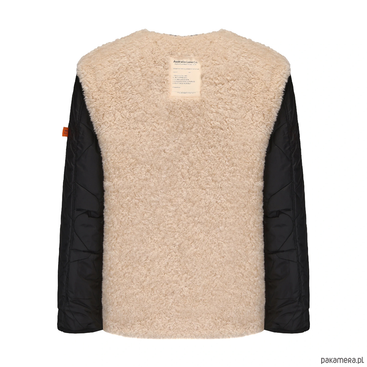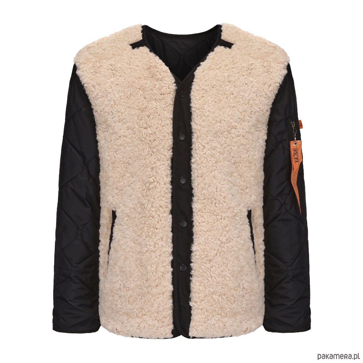 Przytulna, dwustronna pikowana kurtka zapinana na guziki, podszyta miękkim, sztucznym polarem Sherpa. Kieszenie z przodu po pikowanej stronie i elastyczne mankiety chroniące przed zimowym wiatrem.