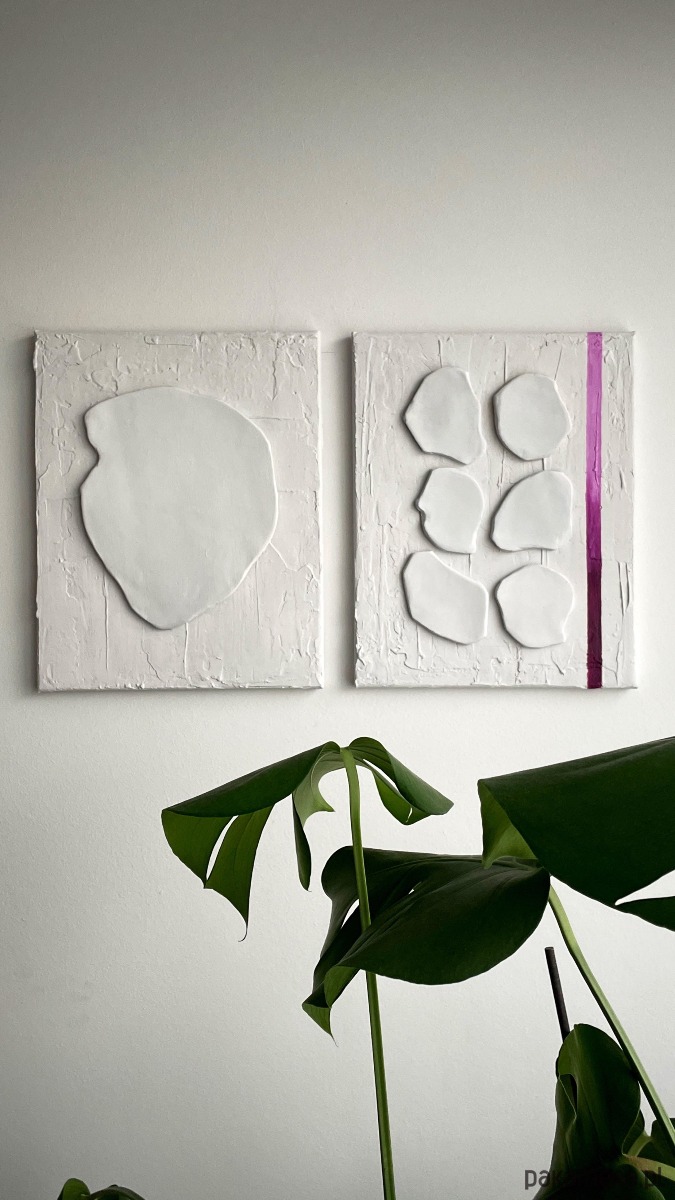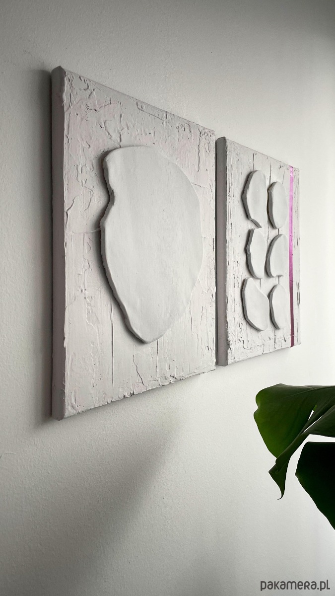 Dyptyk „Piaski” to ręcznie wykonany zestaw dwóch obrazów strukturalnych o wymiarach 30×24 cm, inspirowany subtelnym przejściem tonów i spokojem naturalnych tekstur.